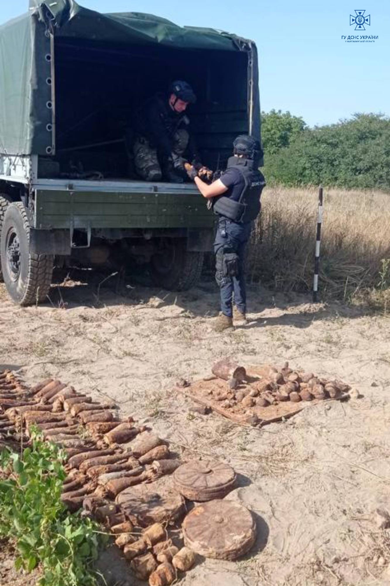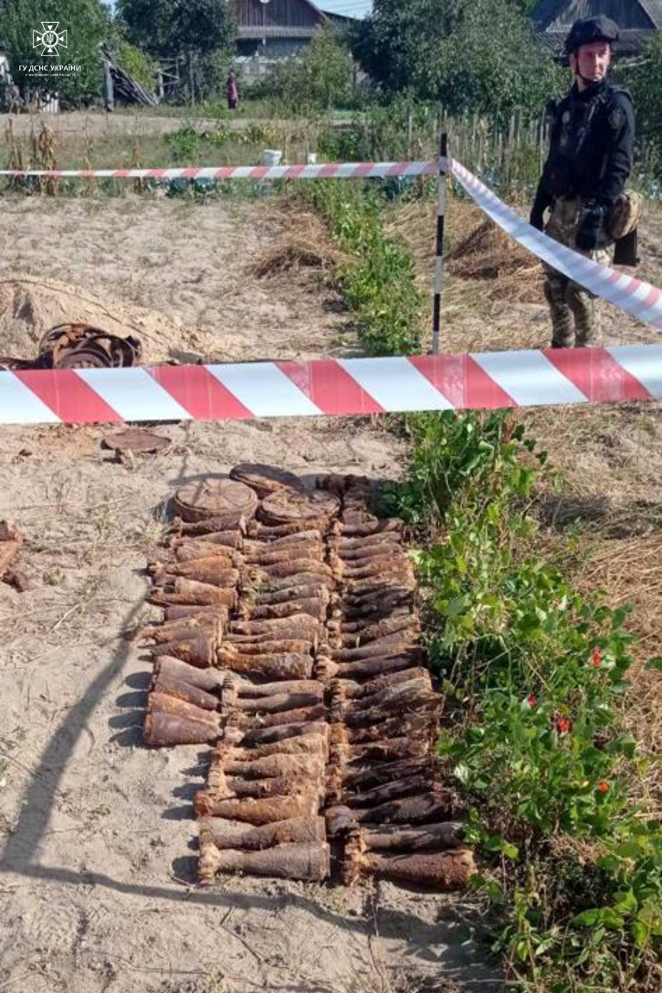 Фахівці ДСНС, які прибули до місця виклику, ідентифікували знахідку як вибухонебезпечний предмет. Під час обстеження присадибної ділянки, сапери виявили десятки боєприпасів. Зокрема, під землею знаходилися 82 мінометні міни, 3 протитанкові міни та 8 ручних гранат.