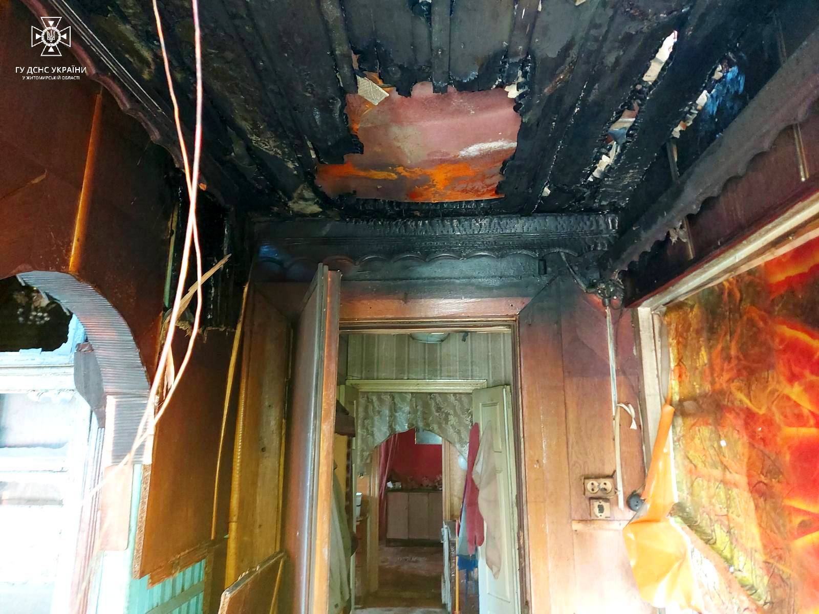 4 травня у смт Лугини Коростенському районі чоловік та дружина почули тріскотіння. Після того, як подружжя вийшли на вулицю, то побачили палаючу покрівлю.