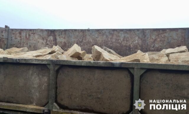 20 жовтня поліцейські зупинили автомобіль “КАМАЗ” із двома причепами, який перевозив каміння. Водій, чоловік 53 років, не мав жодних документів, що б доводили законність перевезення цього вантажу.