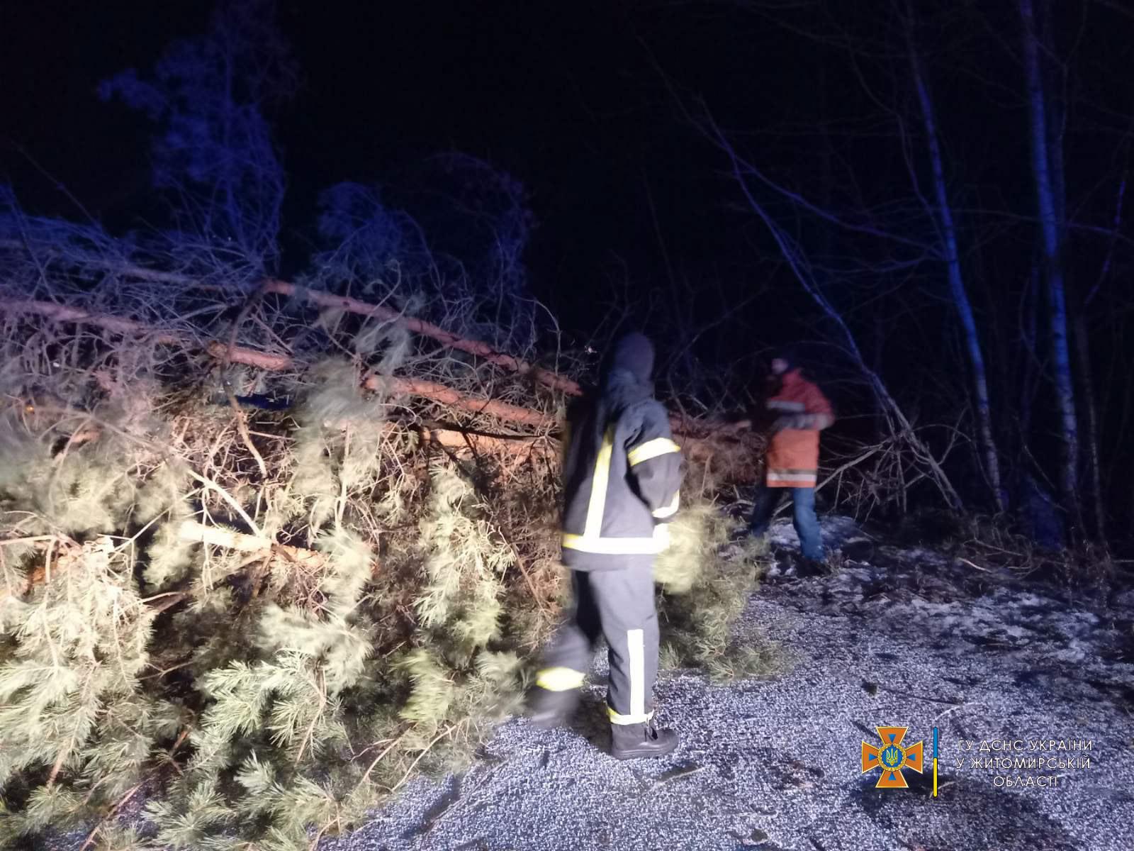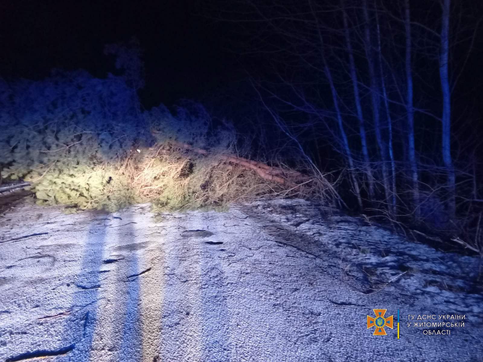 Шквальний вітер до 30 м/с минулої доби у Житомирі та області повалив сотні дерев, транспортні зупинки, дорожні знаки, повідривав шифер із будинків та залишив без електропостачання 163 населені пункти.