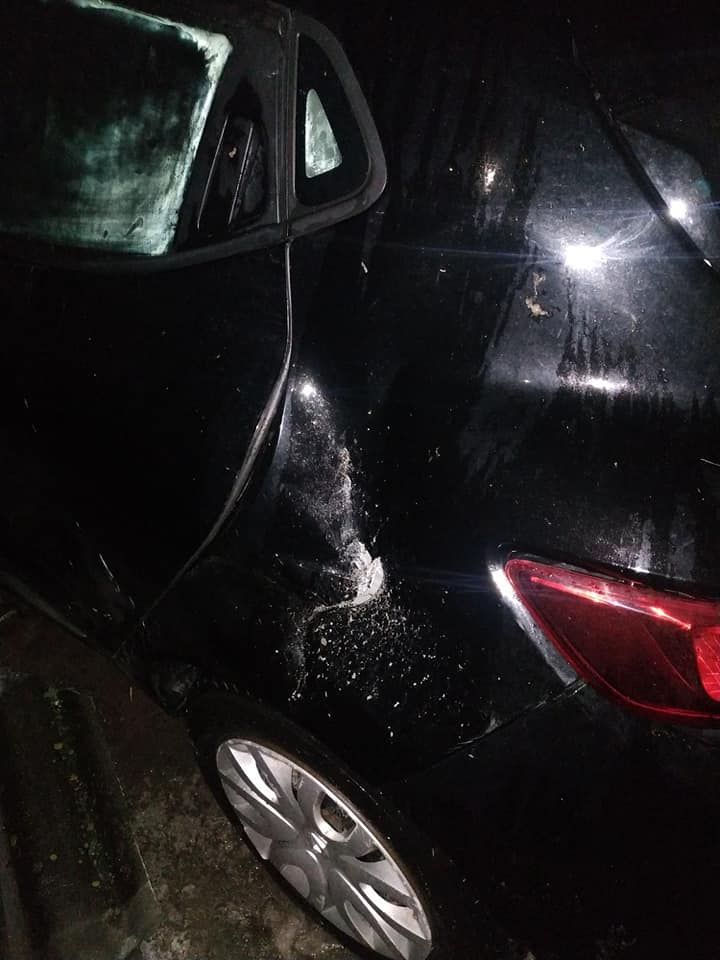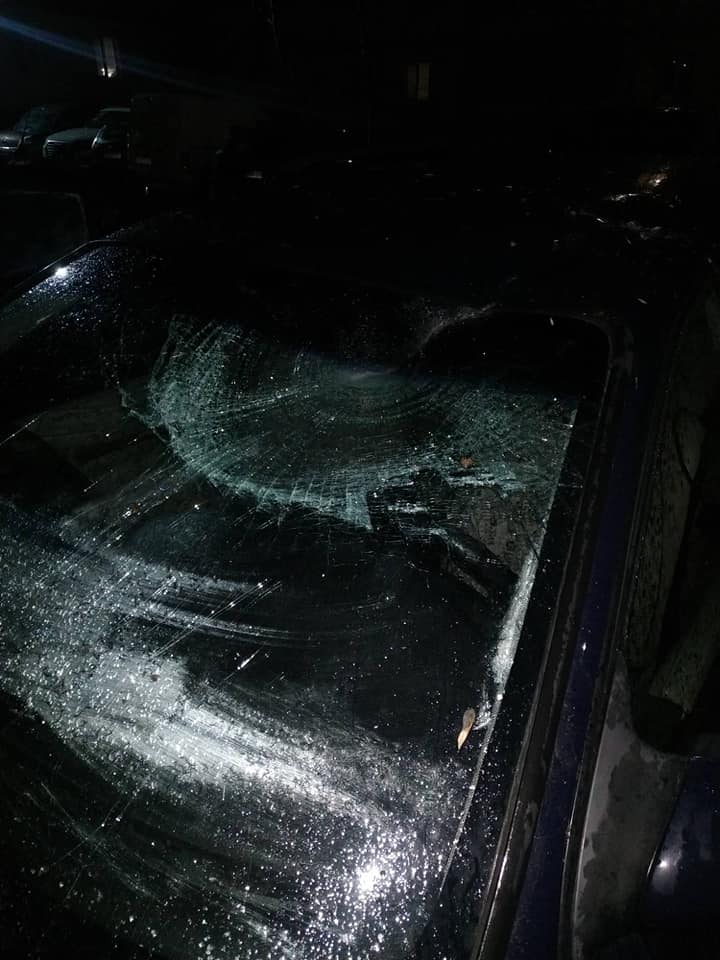 У Житомирі на Польському бульварі уламки шиферу з аварійного даху пошкодили припарковане авто. У Коростені теж вітер відірвав аварійні конструкції з даху.