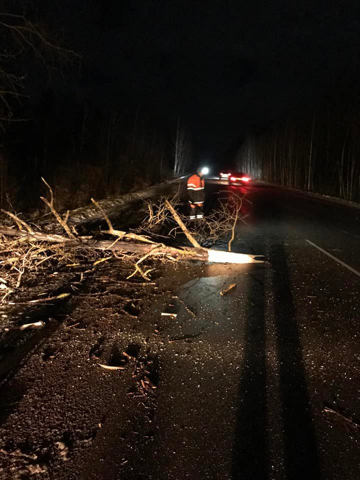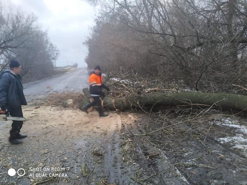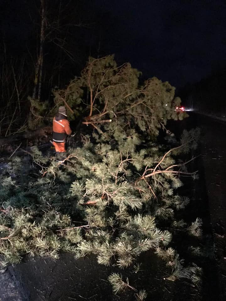 На дорогах області працювали 10 бригад, які прибирали з проїжджої частини 67 повалених дерев.