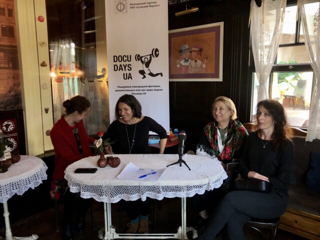 Зустріч відбулася за підтримки НУО “Сучасний Формат” у рамках 18 Мандрівного міжнародного фестивалю документального кіно про права людини Docudays UA на запрошення ГО «Докудейз» в межах Всеукраїнської кампанії «Разом – за безпечні пологи!».
