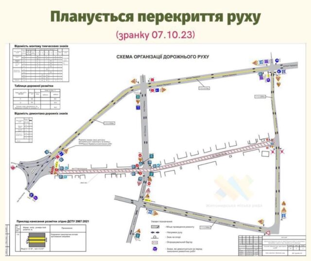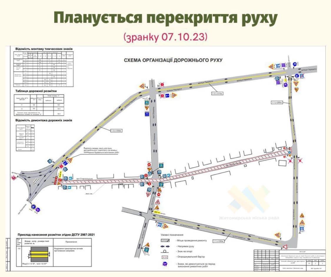 Починаючи з 7:00 7 жовтня у Житомирі проїзд по вул. Старовільській перекрито через реконструкцію вододомережі. Рух автотранспорту здійснюється по вул. Перемоги та є двостороннім, що дозволяє рухатись в обох напрямках. На дорозі нанесена жовта розмітка, яка є тимчасовою, до завершення водоканалом ремонтних робіт.