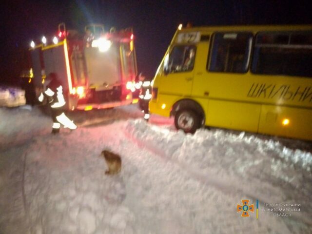 Шкільний автобус із 18 дітьми та двома дорослими на Житомирщині увечері 31 січня потрапив у сніговий замет.