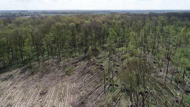 В Ярунському лісництві сильний вітер частково пошкодив квартал насаджень осики стиглого віку.
