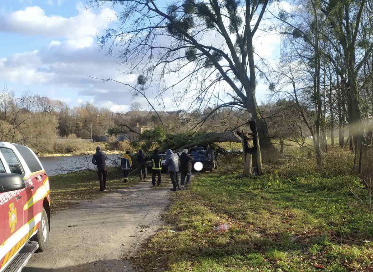 У м. Новоград-Волинський аварійне дерево впало одразу на два автомобілі, власники яких виїхали відпочити на природі. Внаслідок пригоди ніхто не постраждав.