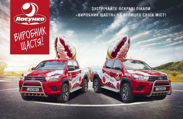 Та минулого року світові обставини дещо змінили цю традицію. Оскільки почали діяти певні обмеження нам довелося дещо змінити формат наших свят. Так у компанії «Ласунка» з’явився незвичайний ice-мобіль. Величезний брендований пікап з неймовірною фігурою морозива на даху.