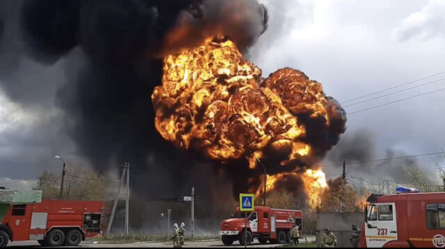 “Про нову пожежу заявили російські пропагандистські ЗМІ. Сьогодні вибухнула, а після того спалахнула цистерна з розчинником у промисловому районі дзержинська, що у нижньогородській області. Пожежа настільки потужна, що в небі утворився величезний стовп чорного диму”.