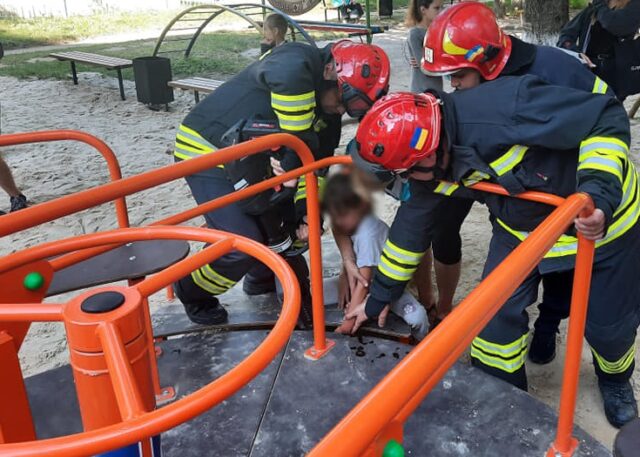 5-річна дівчинка у Житомирі ногою застрягла у щілині між каруселлю та металевим пандусом, що знаходився впритул.