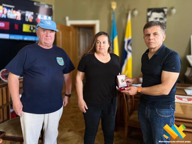 19 липня вона приїхала із ініціативою відкрити курси підготовка медичних інструкторів для українських військових медиків та зустрілася з мером.