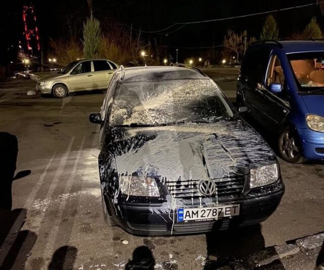 “У Житомирі неправильно припаркований автомобіль облили білою фарбою