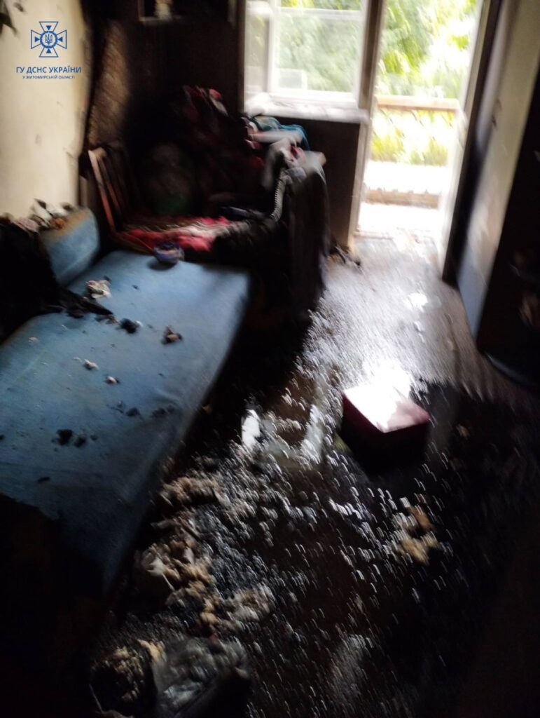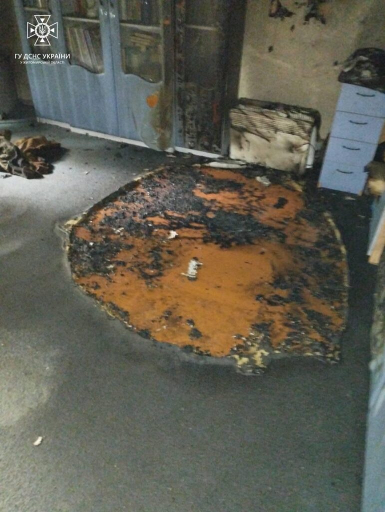 «Сьогодні вранці у Житомирі вогнеборці погасили пожежу в квартирі. Під час проведення розвідки в оселі, вони виявили в кімнаті непритомного 79-річного чоловіка. Він сидів у кріслі. За зовнішніми ознаками спостерігалися опіки на його тілі. Чоловіка госпіталізовано до опікового відділення місцевої лікарні».