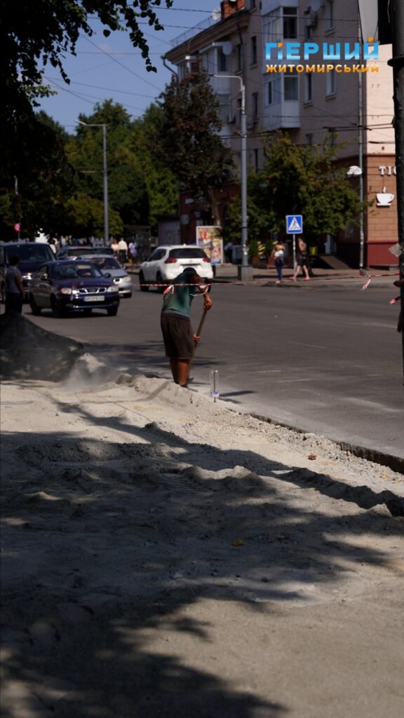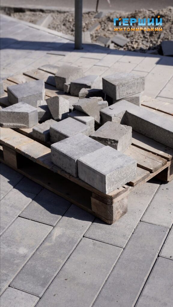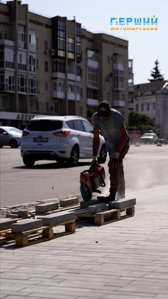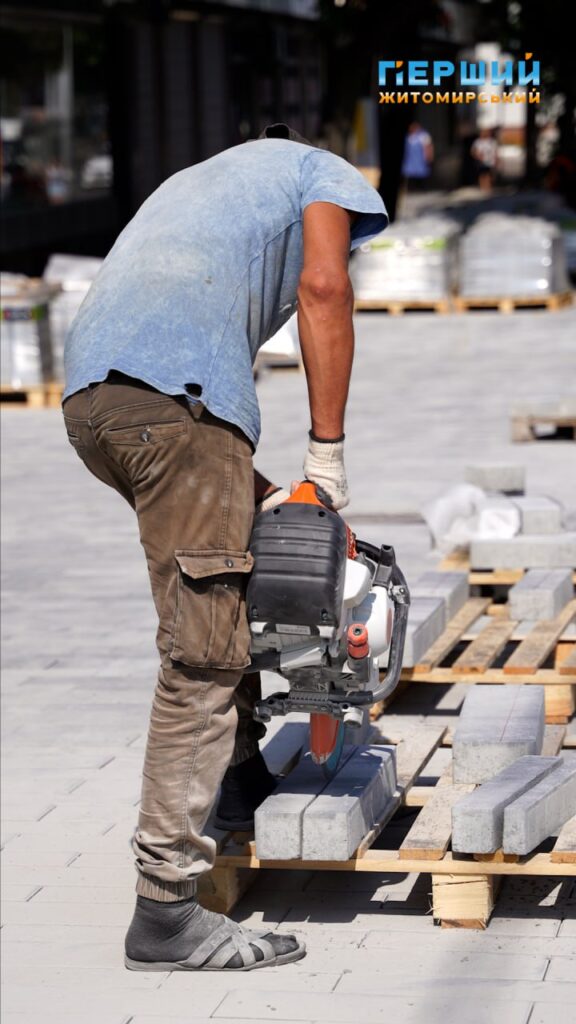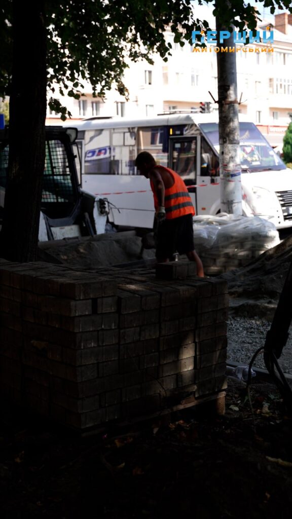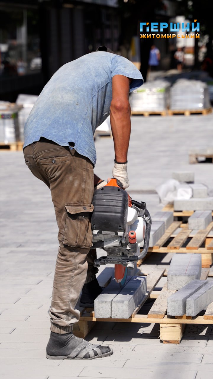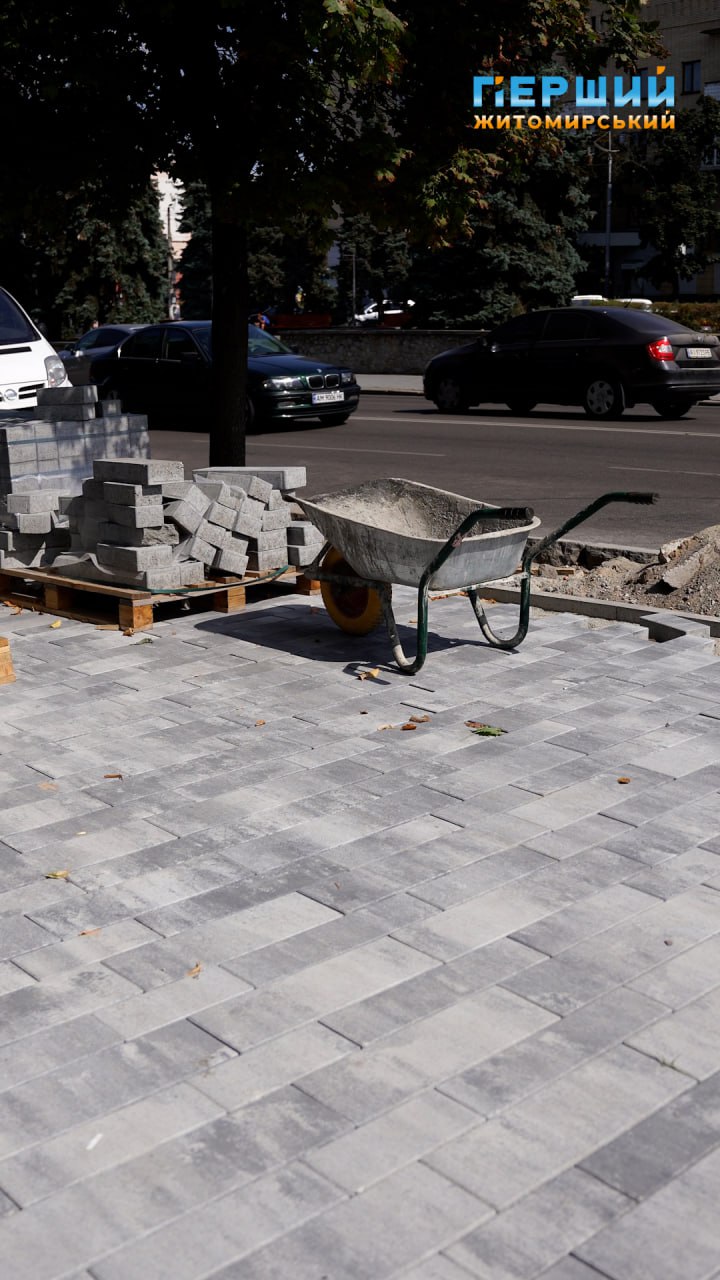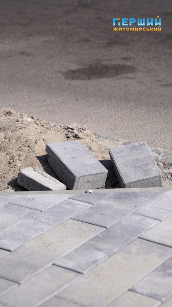 У Житомирі активно ремонтують тротуари по вул. Перемоги – тут старе покриття замінюють на плитку.