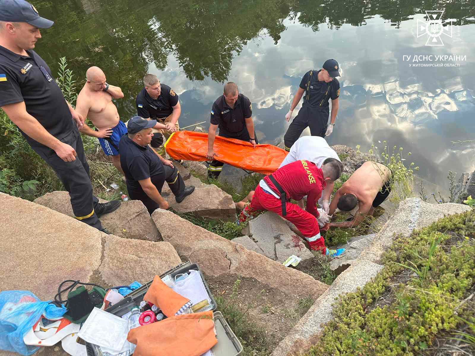 У Житомирі ввечері 6 серпня зі скелі висотою в 3,5-4 м впав 42-річний чоловік. Він відпочивав там та послизнувся на краю скелі. Після падіння він був у свідомості, проте не міг відповідати на запитання.