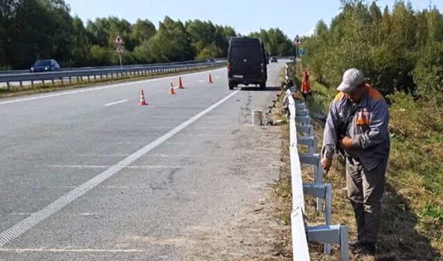 “В рамках експлуатаційного утримання ремонтуємо пошкоджені внаслідок дорожньо-транспортних пригод елементи огороджень бар’єрного та перильного типів на державних шляхах області.