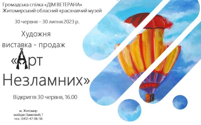 У Житомирському обласному краєзнавчому музеї відкрили виставку “Арт Незламних”. Виставка-продаж картин поранених українських воїнів, які наразі проходять лікування в травматологічному відділенні Житомирського військового госпіталю.
