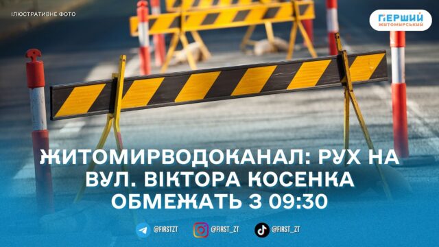25 лютого у Житомирі через аварійно-відновлювальні роботи на водопровідній мережі на вул. Віктора Косенка тимчасово обмежать рух транспорту. Про це повідомили в КП «Житомирводоканал».