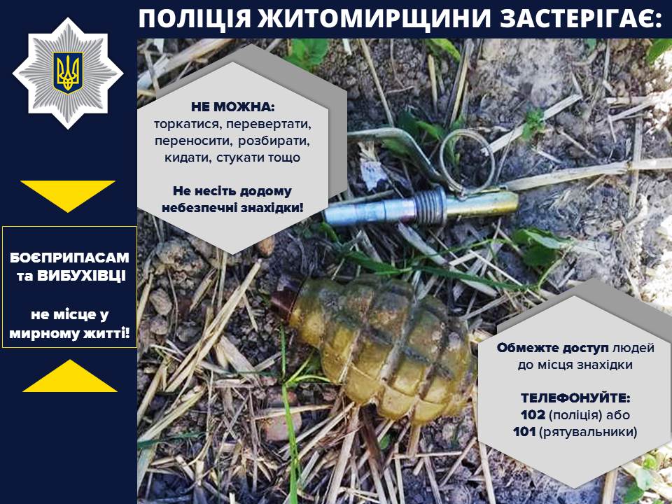 “За словами 32-річного чоловіка, він знайшов боєприпас на одній з вулиць міста. Щоправда, спочатку приніс небезпечну знахідку додому, а потім зателефонував до правоохоронців. Поліцейські вилучили гранату «Ф-1» та відокремлений запал до неї”, – йдеться в повідомленні.