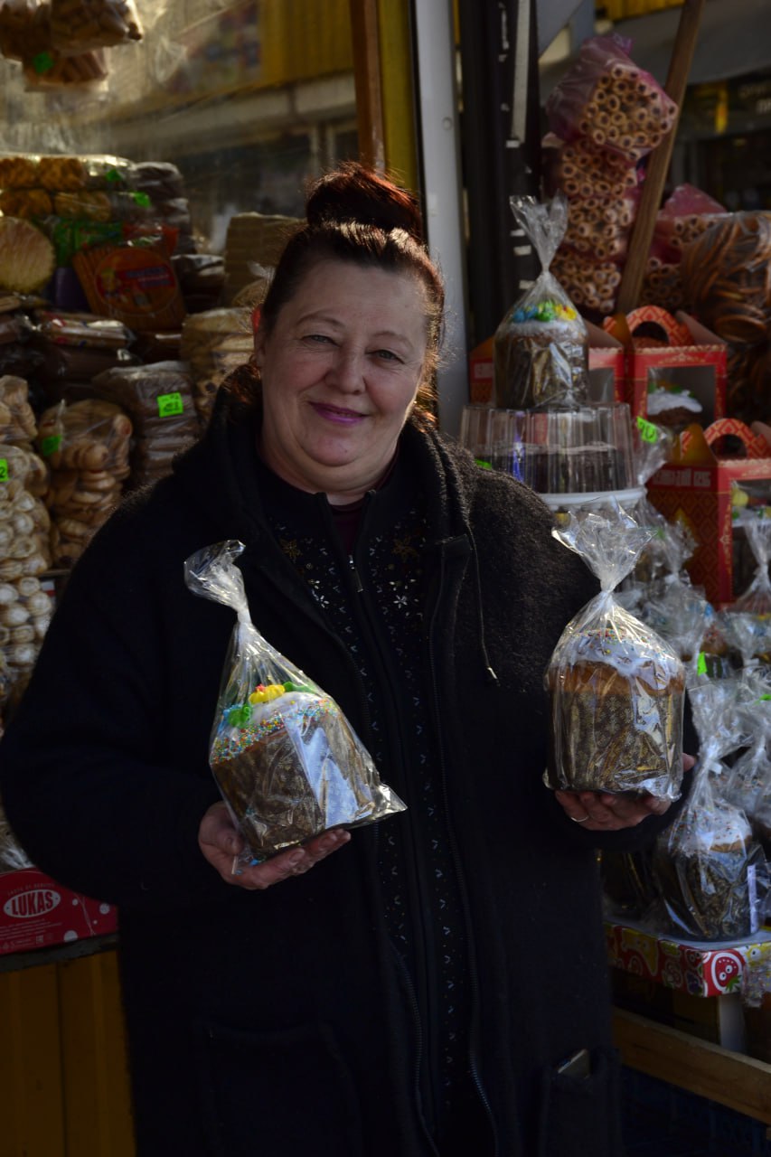 “У мене пасхи зі Львова з різною начинкою: з родзинками та цукатами. Найбільше беруть середні розміри. Загалом, ціни збільшилися на 10-15%. Жителі міста не скаржаться”.