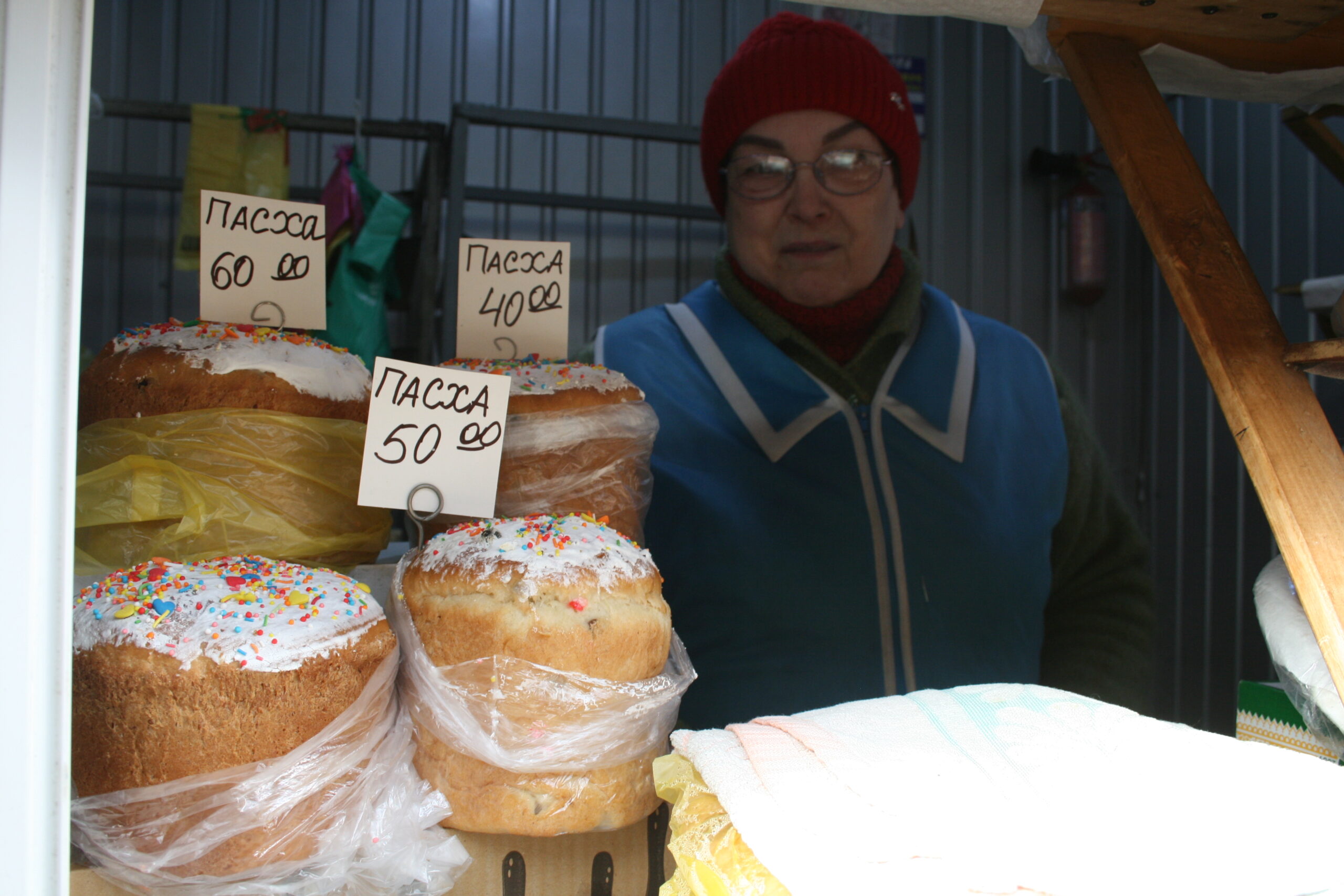 Продавчиня Людмила замовляє пасхи у Львові. Житомиряни активно беруть пасхальні смаколики й не скаржаться на ціни: