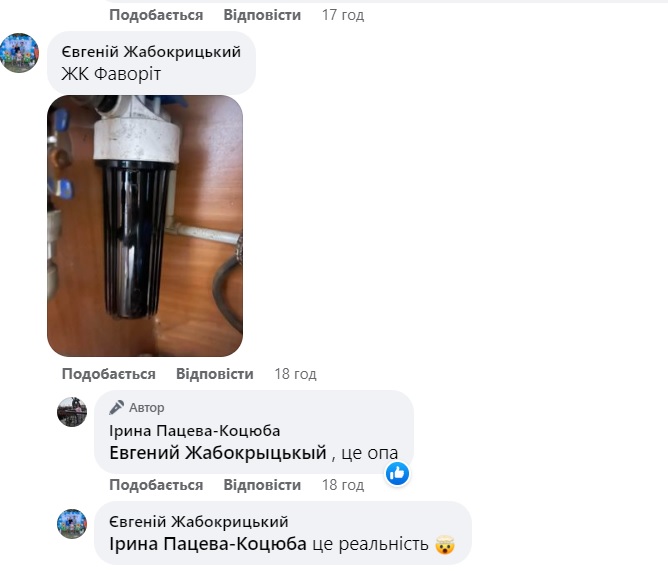 Під постом Ірини назбиралося багато коментарів від житомирян. Люди пишуть, що в них через два тижні чорні фільтри від води.