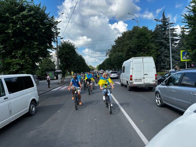 “До велопробігу доєдналися понад пів сотні жителів громади. Патріотичний дух заходу проявлявся й в одязі велосипедистів у кольорах національного прапора, оздобленні велосипедів.Перед початком заходу до учасників заходу звернулась т.в.о. начальника управління у справах сім’ї, молоді, фізичної культури та спорту Тетяна Кравчук, яка подякувала учасникам за активну життєву позицію та небайдужість”.Юні патріоти озвучили найважливіші статті основного закону нашої країни, які, на жаль, порушує ворог, що прийшов на нашу рідну землю“.