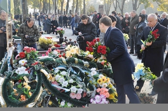 Рiднi загиблих, керiвники областi та мiста, громадськiсть поклали квіти до могил на вiйськовому кладовищі, інформує прес-служба ОДА.