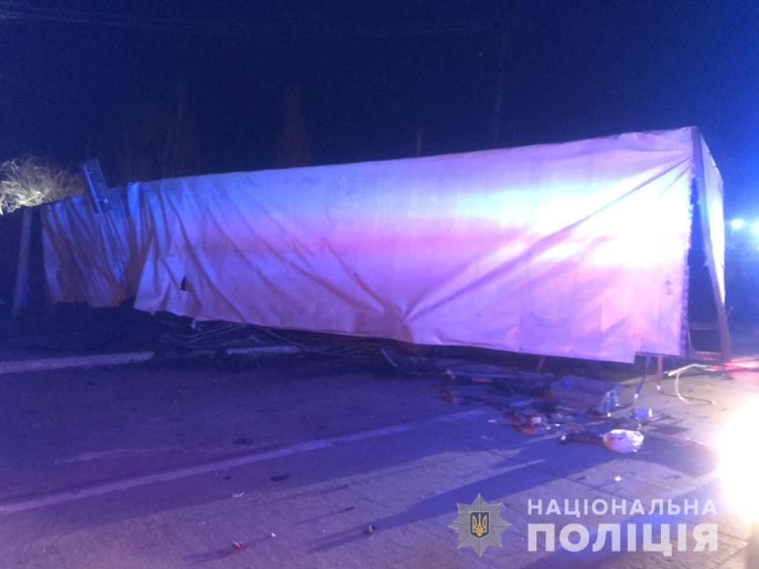 Попередньо, керманич вантажівки «Volvo», 33-річний житель Львівщини, допустив зіткнення з ВАЗівкою, внаслідок чого фура перекинулася.