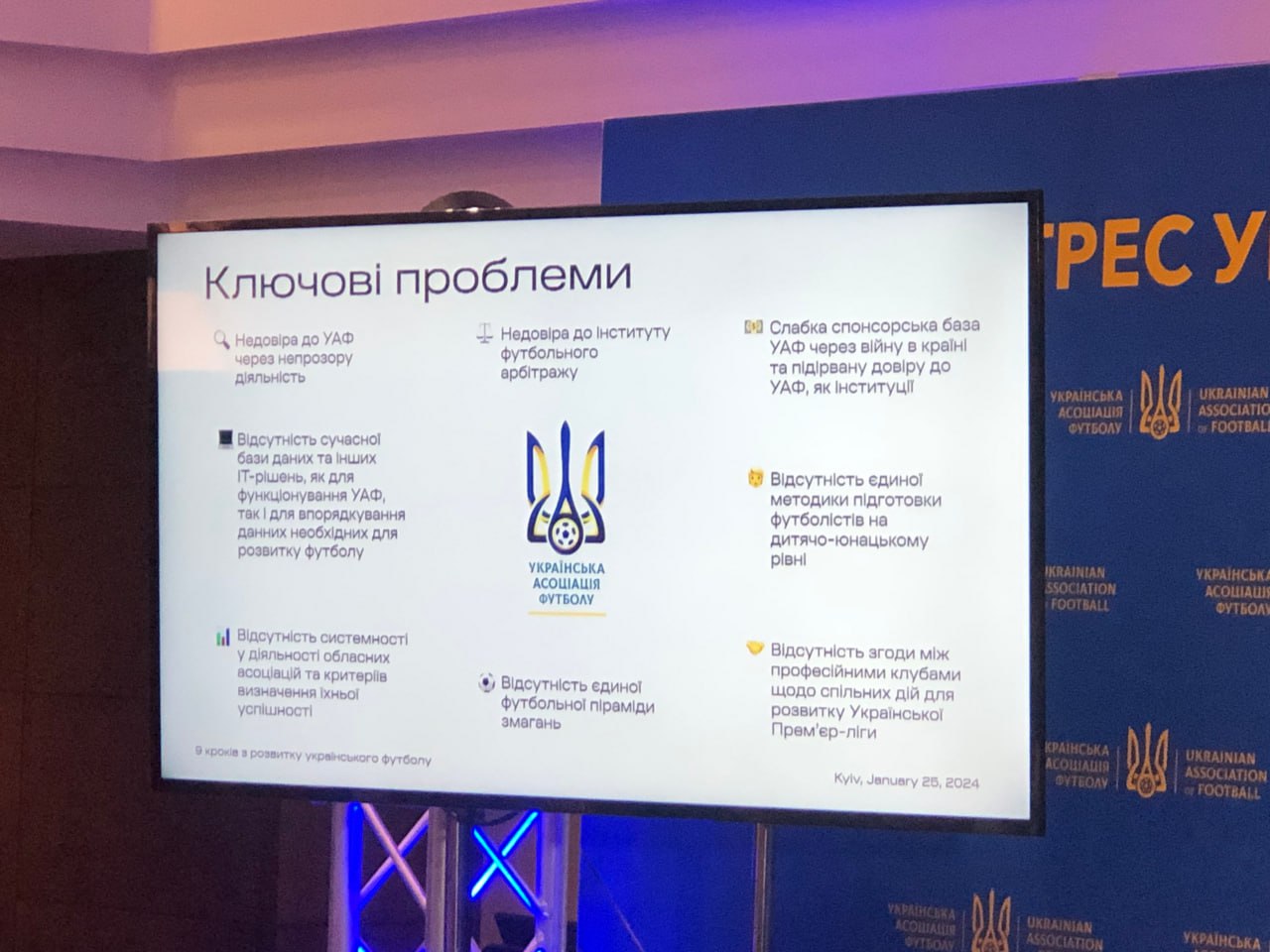 25 січня в Києві відбувся 26-й конгрес Української асоціації футболу, на якому обрали нового очільника. Ним став легендарний український ексфутболіст Андрій Шевченко. Обрали його шляхом голосування. Проголосували: За – 93 голоси, Проти – 0, Утрималися – 0. З цікавого, під час свого виступу на конгресі Шевченко оголосив про аудит фінансової діяльності асоціації за 9 років. Також Андрій Шевченко провів паралель між Україною у воєнний час та Хорватією 90-х. Він зауважив, що Україна наразі не може рівнятися до країн, де зараз все благополучно. Про це на своїй телеграм-сторінці повідомив спортивний журналіст Роман Зверов, який був присутній на заході.