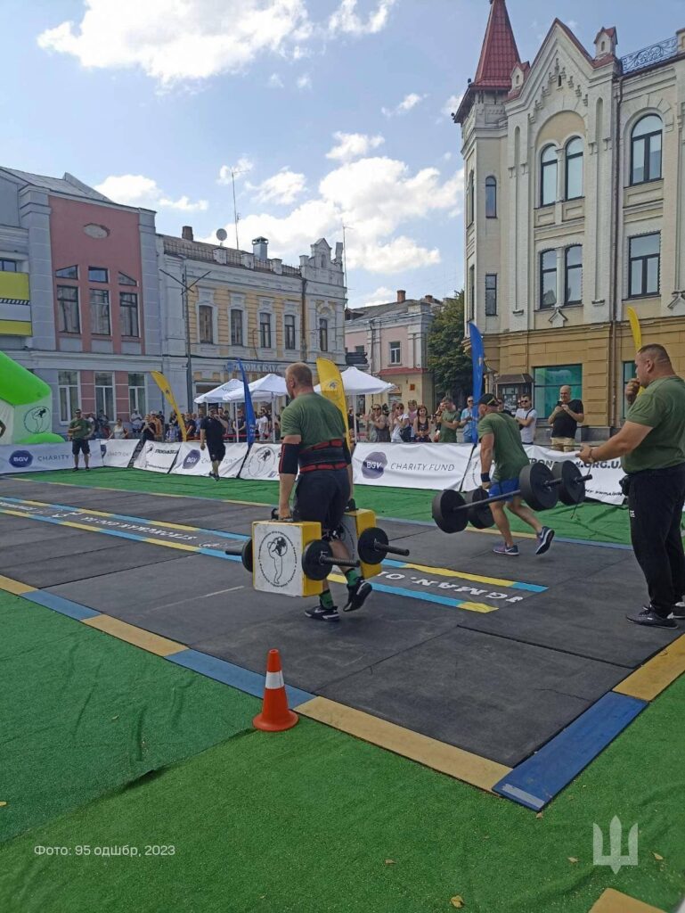 У Житомирі 6 серпня воїни 95-ї бригади взяли участь у змаганнях зі стронгмену «Сильні України». Головний суддя змагань Василь Вірастюк.