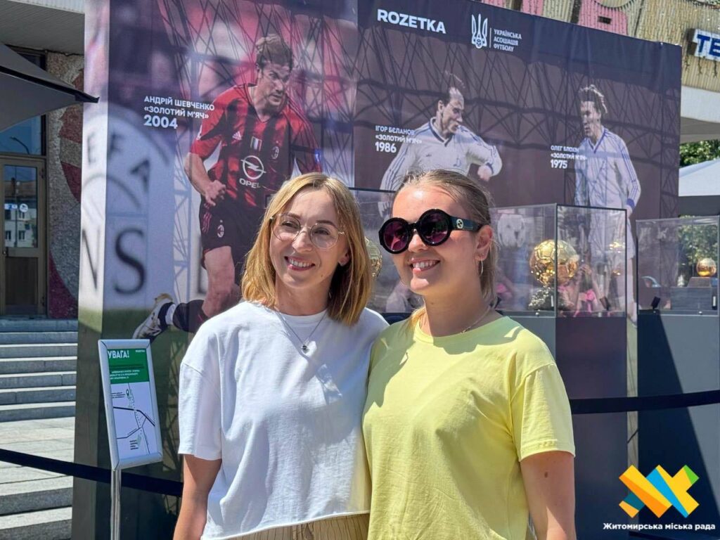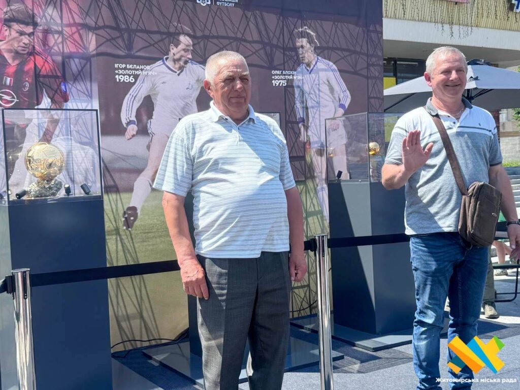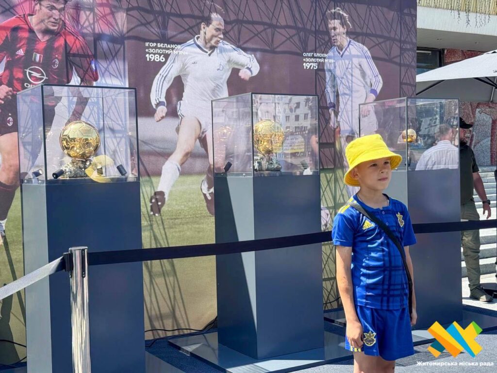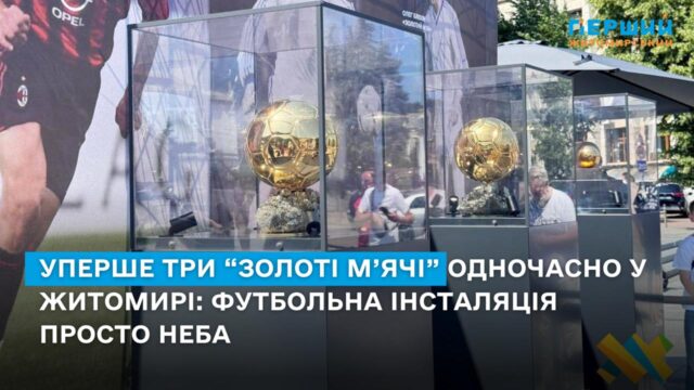 Футбольна інсталяція просто неба відкрита з 12:30 до 21:00 біля кінотеатру “Жовтень”. Побачити історичні трофеї можуть усі охочі: вхід вільний. Це частина всеукраїнського туру “Золотих м’ячів”, який уже побував у Львові, Одесі та Києві. Після Житомира трофеї вирушать до Рівного і Луцька.