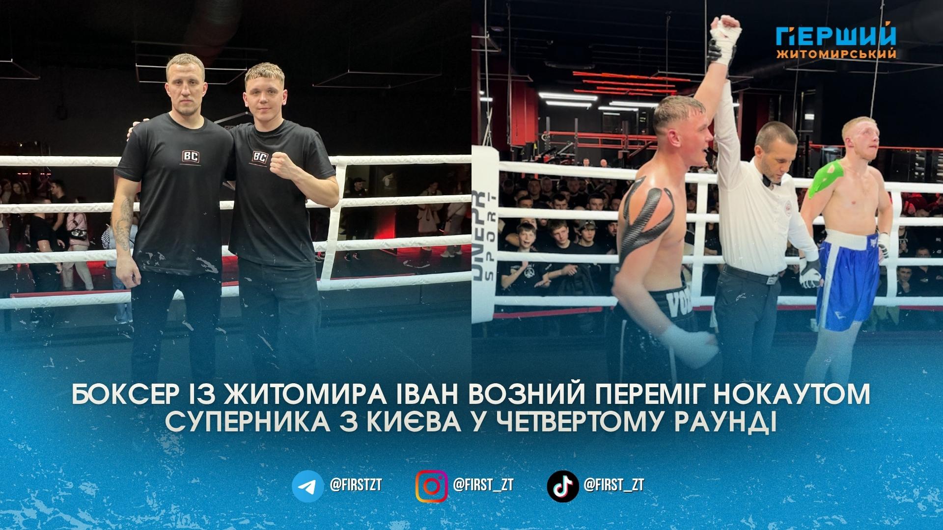 Суперником житомирянина був професійний боксер із Києва. Поєдинок завершився достроково на користь Івана Возного після результативної атаки в четвертому раунді.