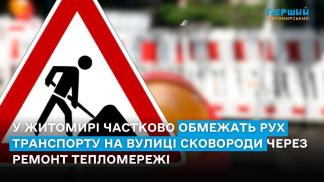 З 25 червня у Житомирі частково перекриють рух транспорту на вулиці Григорія Сковороди в районі будинків 14–18/5.
