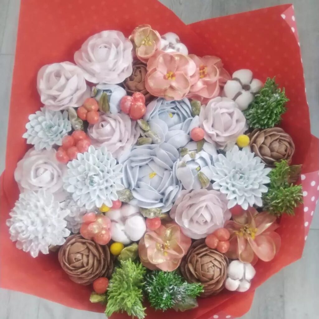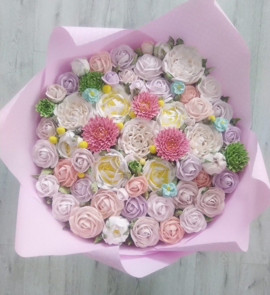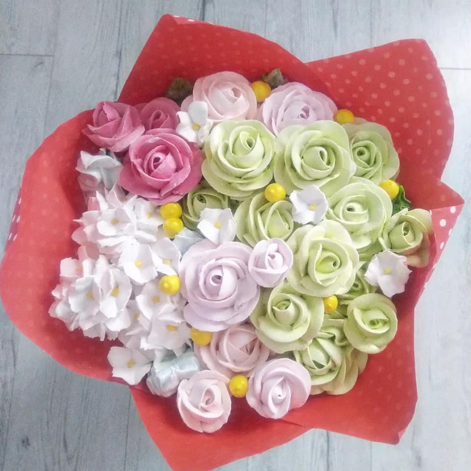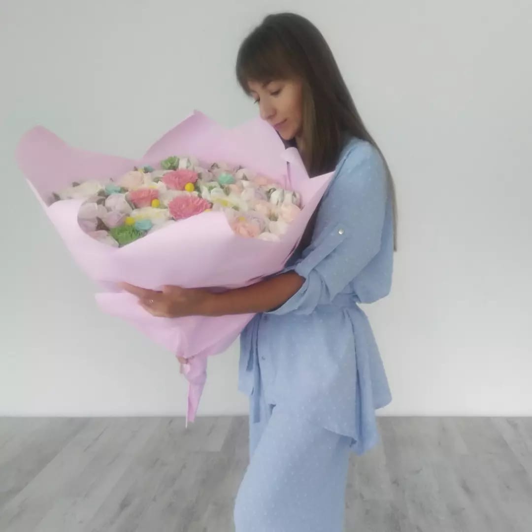 Коли переконалася, що квіти виходять дійсно гарні, опублікувала їх фото на своїй сторінці в мережі і почала отримувати замовлення від колег і знайомих. Просили звичайні зефірні завитки та букети.