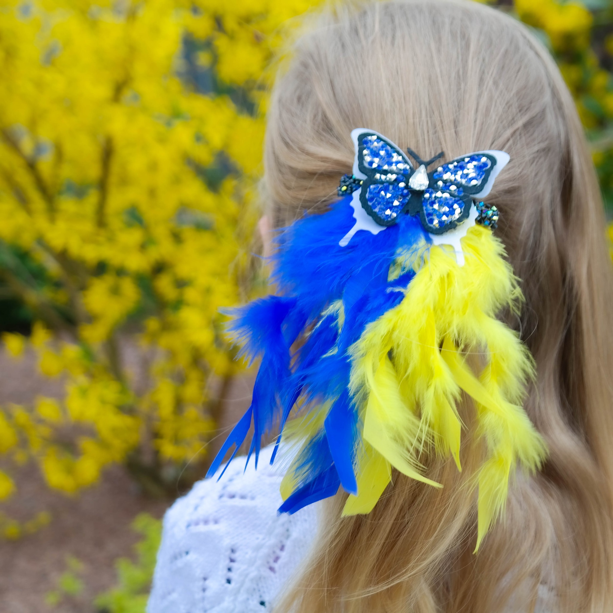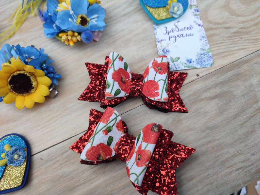 За 150 гривень можна купити патріотичний бант для волосся, використати його для тематичних фотосесій, святкових подій, особливо напередодні Дня Незалежності, початку нового навчального року та ін. Також має в асортименті інші прикраси з квітами, метеликами, блискітками, пір’ям у яскравих чи жовто-блакитних кольорах.