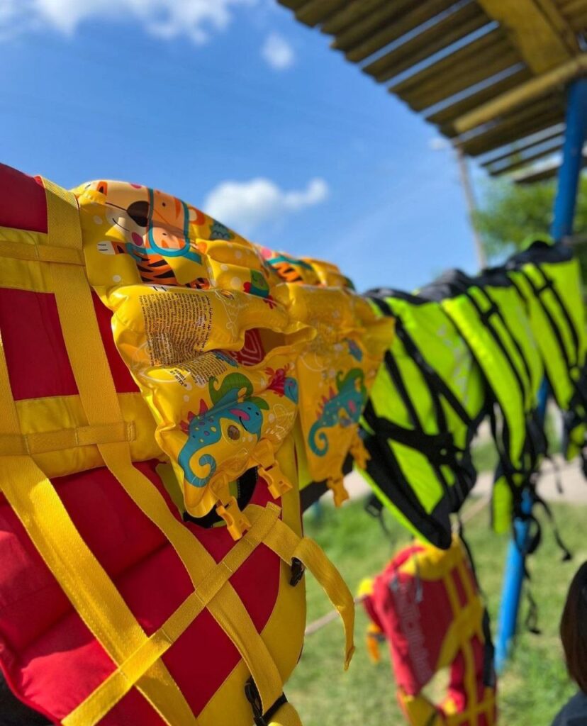 «Сезон катамаранів ми розпочали у травні і орієнтовно плануємо продовжувати до вересня, якщо дозволять погодні умови. Це сучасні, швидкісні й комфортабельні катамарани власного виробництва із тіньовим завісом від сонця чи опадів. Вони майже нові, відпрацювали лише сезон, тобто два місяці, в морі. Я встиг ще перед війною їх перевезти в Херсон, тому було легше забрати, – пояснює Володимир. – Якщо потрібно, надаємо якісні рятувальні жилети. Десь із тисячу таких у мене залишилося в Залізному Порту, а тут маємо все купувати заново. Ми проводимо інструктаж і нагадуємо про правила безпеки під час катання на катамаранах, слідкуємо за їх дотриманням. Працюємо з 10 години ранку до 20.00. Вартість – 200 гривень/година. Це досить демократичні ціни, порівняно з іншими регіонами. Якщо орендувати на кілька годин, передбачені знижки. З військових я взагалі гроші не беру, але вони відмовляються і пропонують сплатити хоча б половину. Іменникам – безкоштовно. Якщо спокійний, тихий і не косий дощ, можна продовжувати кататися по річці. Максимальна кількість осіб на один катамаран – чотири. Дітям можна лише з 7 років у супроводі дорослих. Поки більше катамаранів перевозити не плануємо, бо ми тут працюємо не одні, на пляжі місця нема».