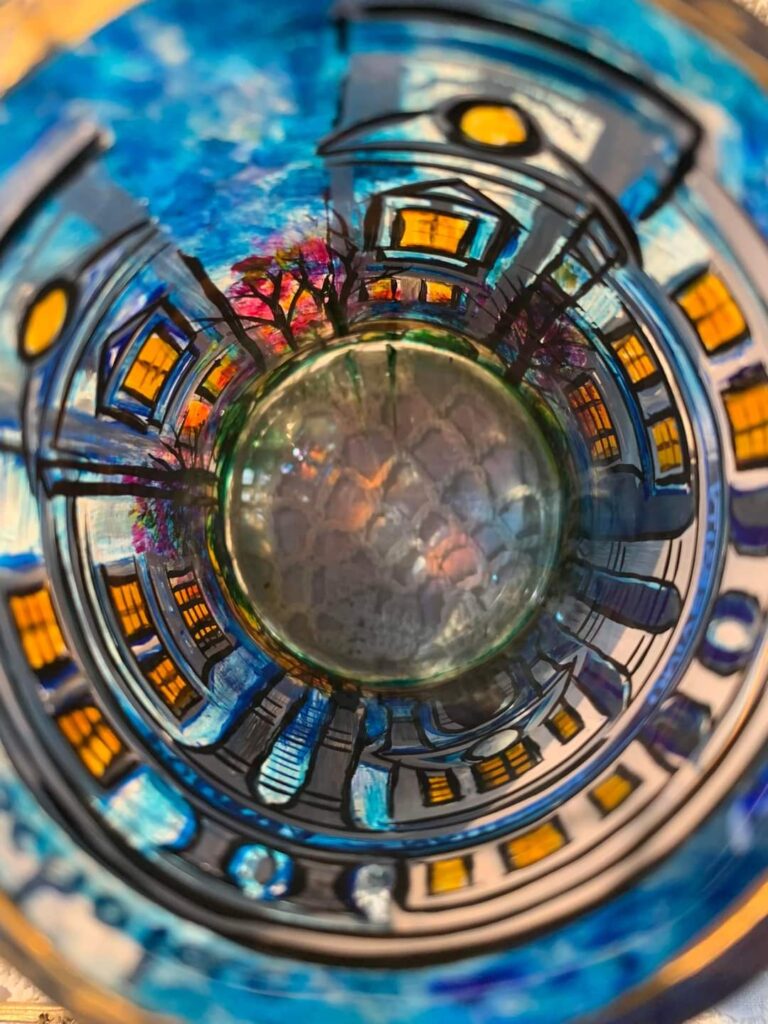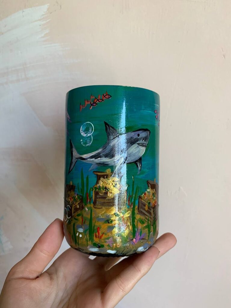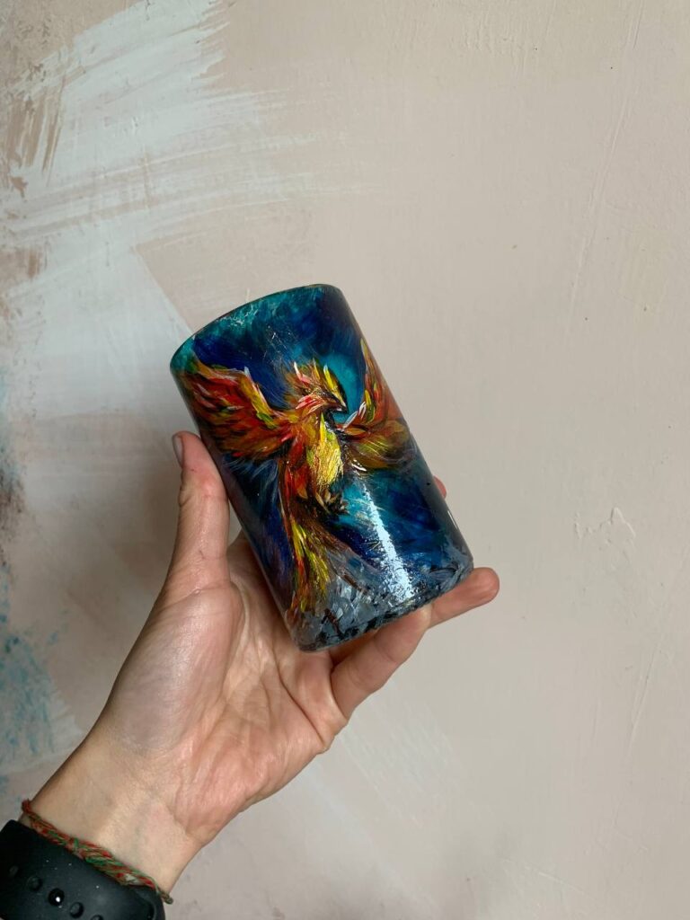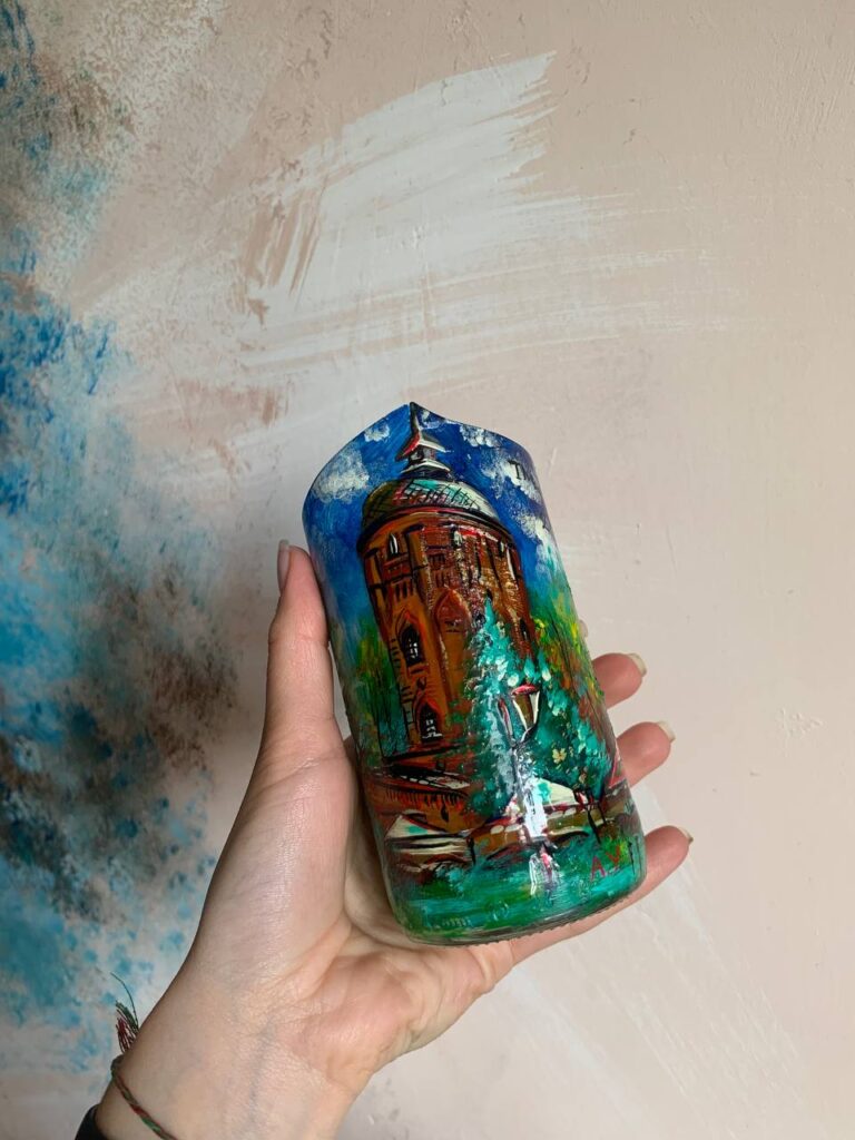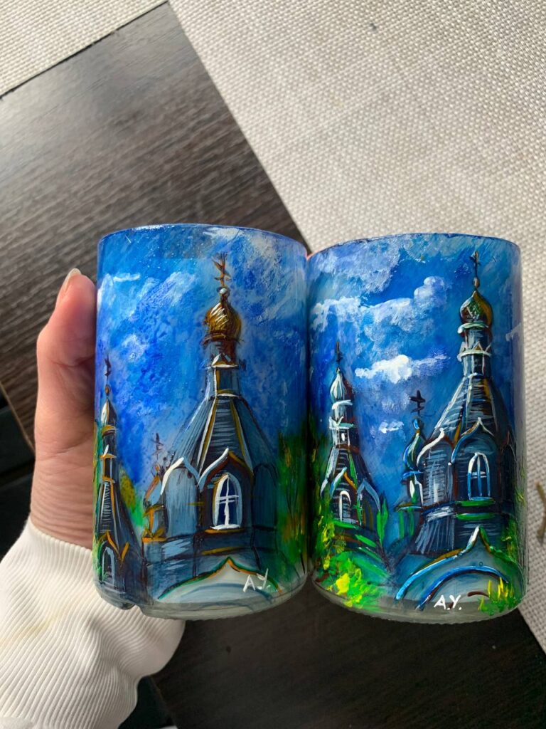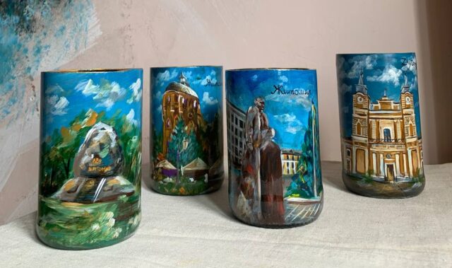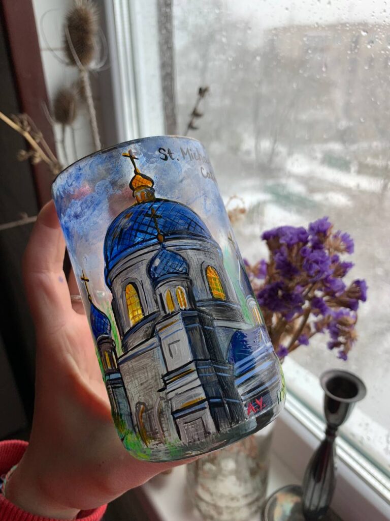 Проте, деякі пляшки, завдяки оригінальній формі чи кольору, почали отримувати шанс на друге життя і багаторазове використання. Восени минулого року придбала склоріз і спробувала порізати перші пляшки, на яких потім з’явилися різні малюнки, переважно квіткова й геометрична тематика, а також споруда церкви у рідному селі Стара Чортория. До речі, саме цей виріб був досить популярним – замовляли односельці і ті, хто перебував за кордоном. Виготовила більше 10 екземплярів. Також зверталися із проханням намалювати церкви із сусідніх населених пунктів. У таку тару дівчина заливала соєвий віск з різним ароматом на вибір. Після того як свічка догорить, можна залити наступну або просто використовувати ємкість як підставку для косметики чи канцелярії тощо.
