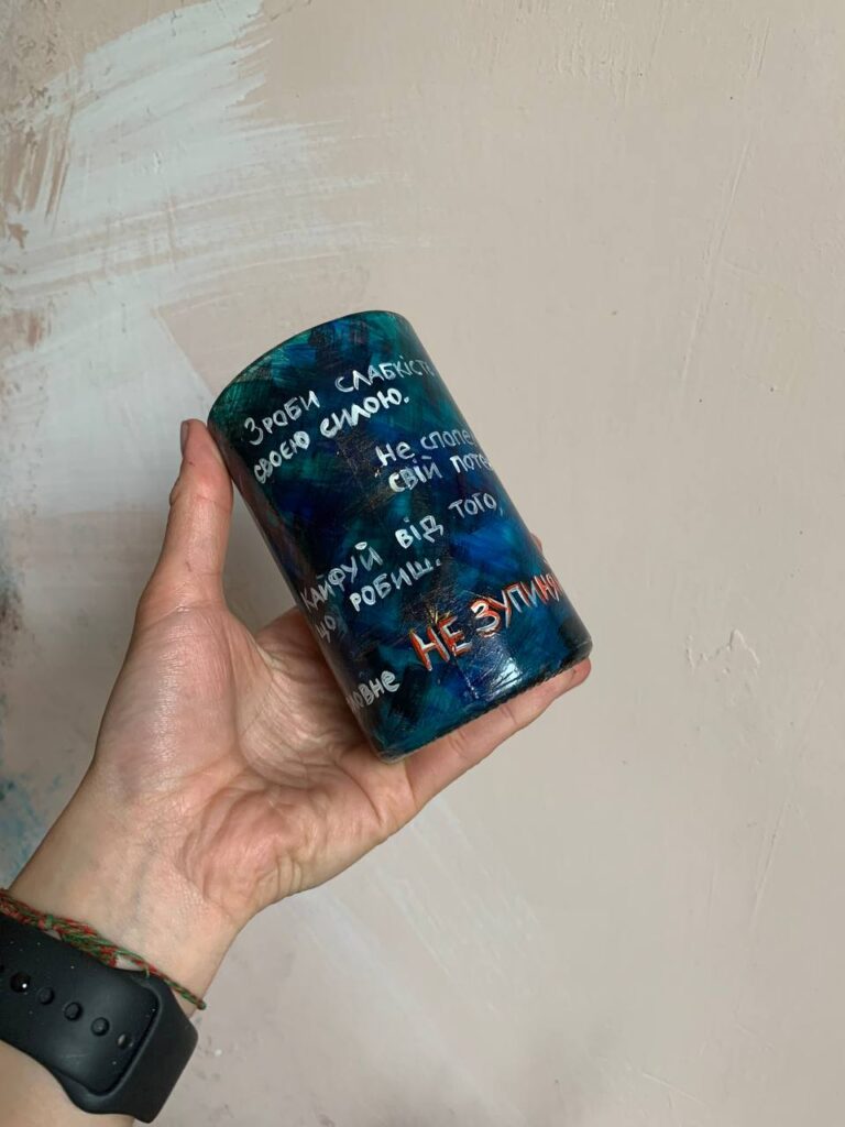 Дівчина створила власний бренд «Будь добрим» – виготовляє свічки, органайзери, підставки та інші корисні речі чи предмети декору із б/у скляних пляшок від газованих чи спритних напоїв, які попередньо миє, ріже, шліфує, а далі розмальовує і покриває лаком. Кожен виріб – абсолютно унікальний, 100% ручна робота.
