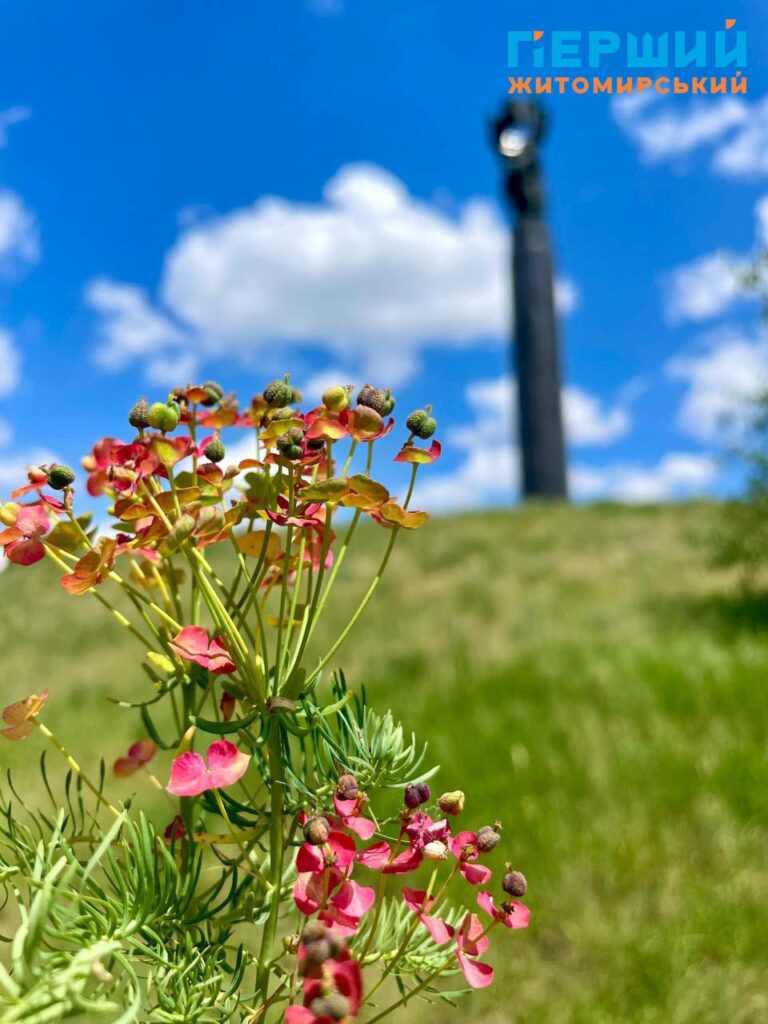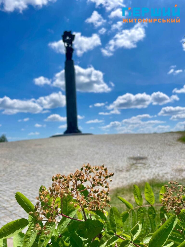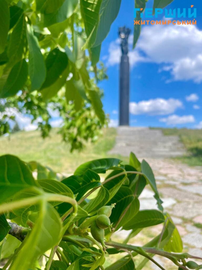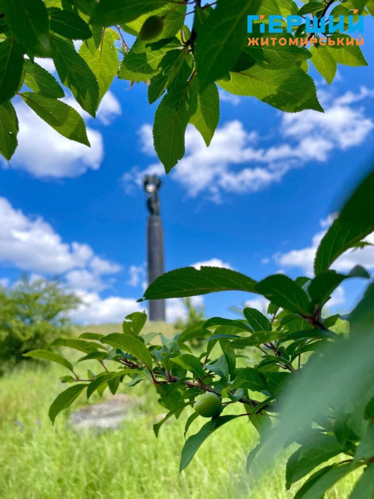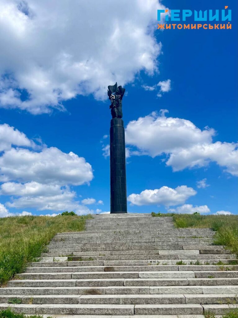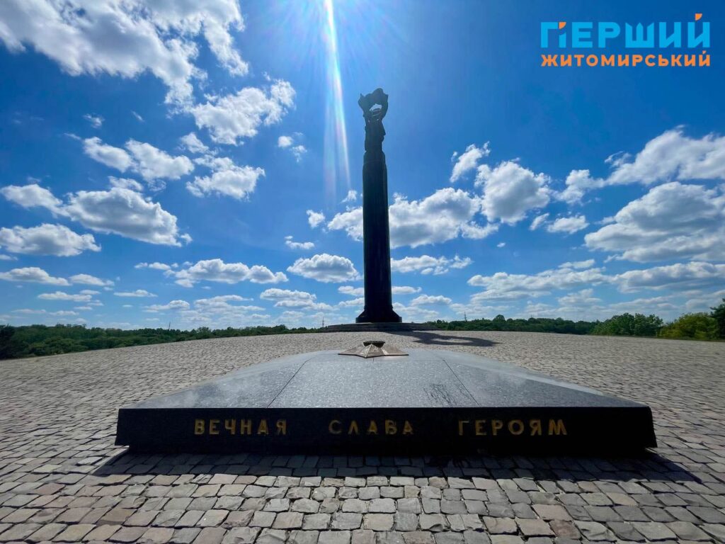 Нагадаємо, що Монумент Слави, до якого з різних сторін ведуть сходи та алеї від центральної вулиці, відкрили у Житомирі в 1979 році. Обрали для встановлення одну з найвищих точок міста. Монумент (скульптори – І. Коломієць і Г. Хусид, архітектори – І. Іванов, А. Ігнашенко) являє собою високу масивну колону (без фундаменту, притягнута десятками струн арматури до скелі) циліндричної форми, висічену з житомирського лабрадориту, на якій установлена скульптурна композиція, а на гранітному постаменті викарбувані назви частин Радянської армії, партизанських з’єднань і загонів, підпільних організацій, прізвища воєначальників, командирів, керівників підпілля. Біля монументу горить «вічний вогонь», а навколо – парк. Свого часу була традиція, коли житомиряни у день весілля їхали покладати квіти до «вічного вогню» і фотографуватися у березах біля Монументу Слави.