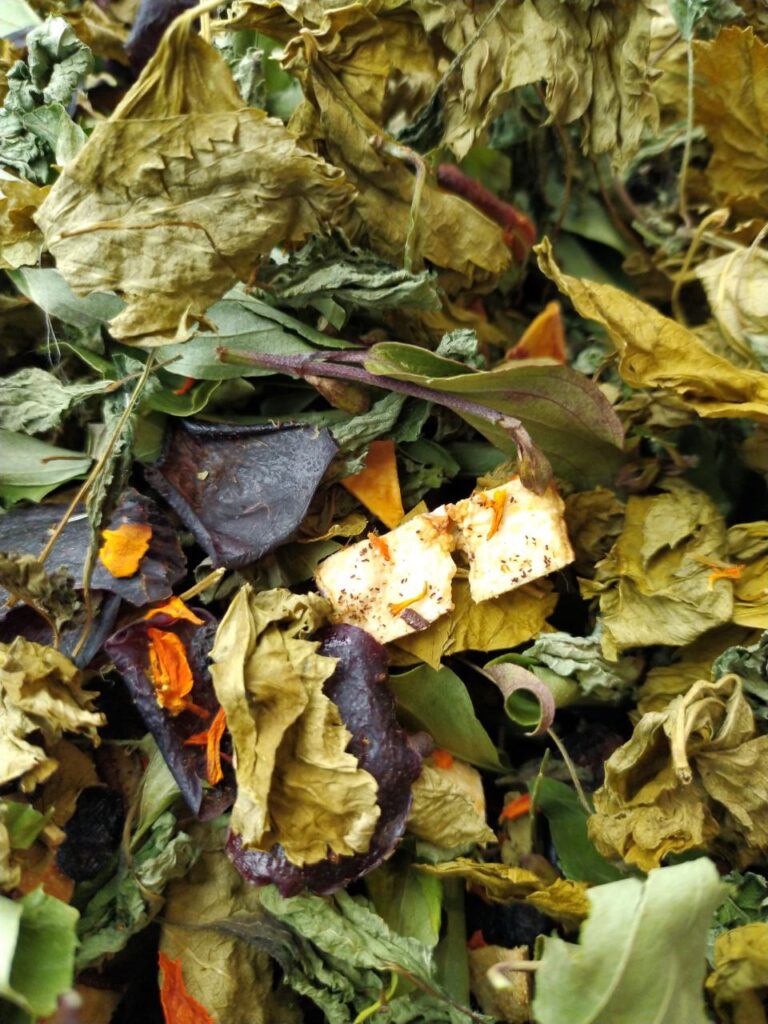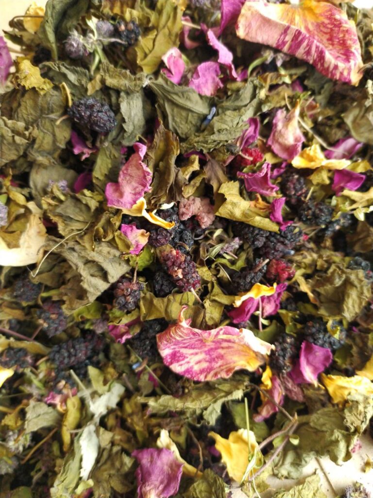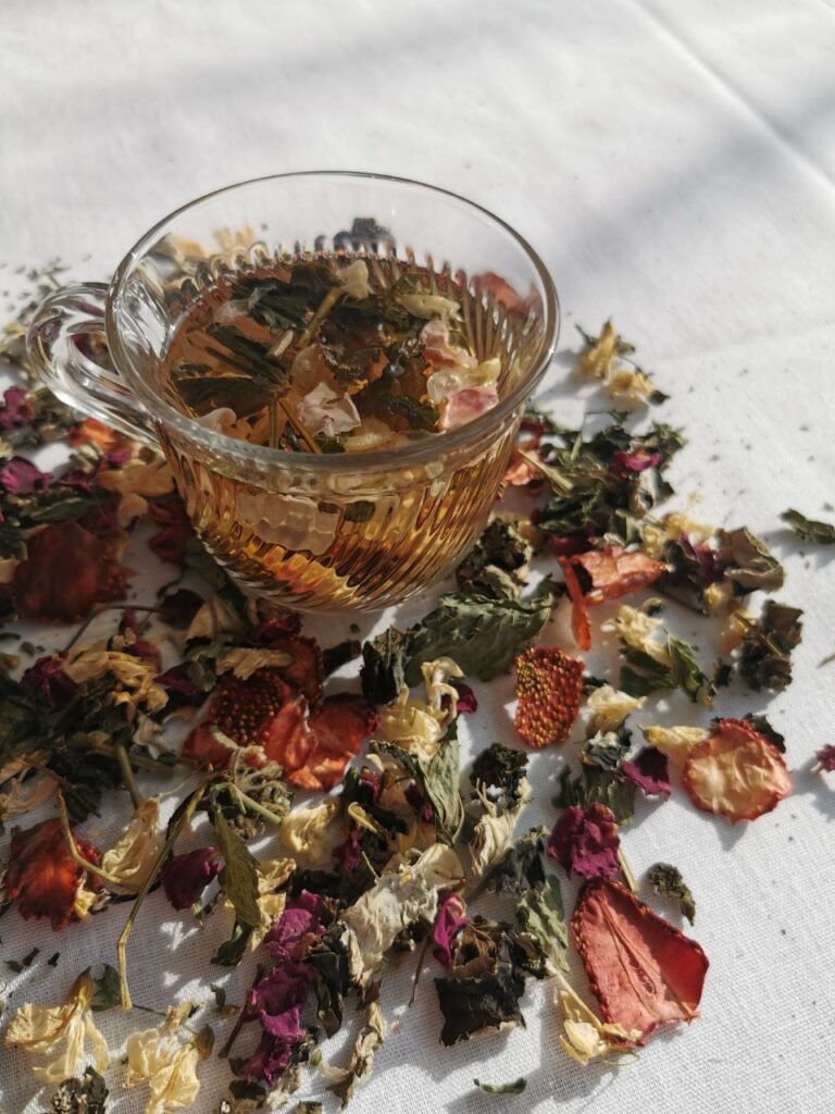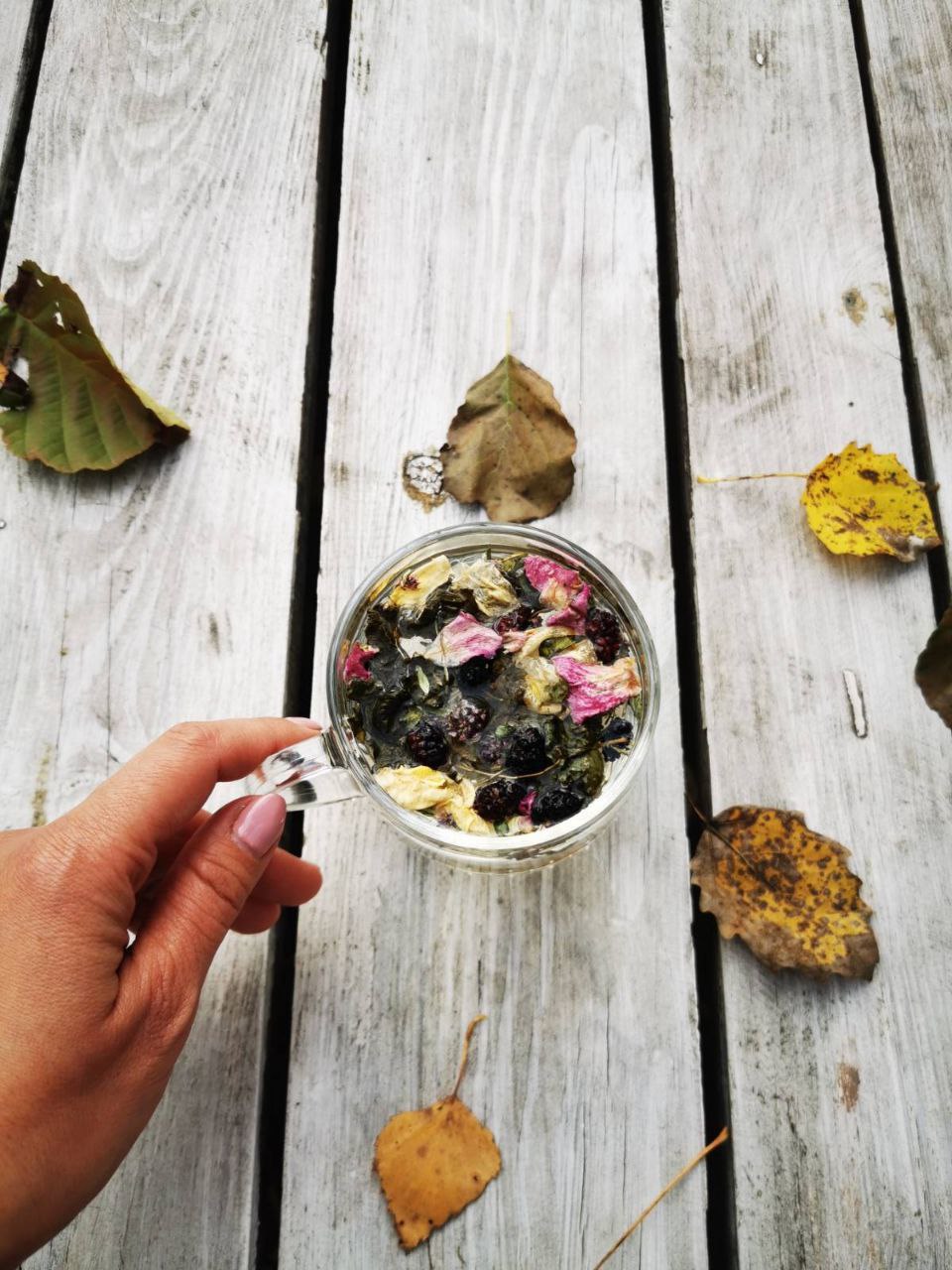 З листя і плодів фруктових дерев, із трав та квітів, зібраних у власному саду, в лісі чи у полі житомирянка Юлія створює різноманітні авторські чаї. Протягом весни-літа (з квітня по вересень) заготовляє та сушить сировину, а вже восени формує чайні композиції і відправляє замовлення.