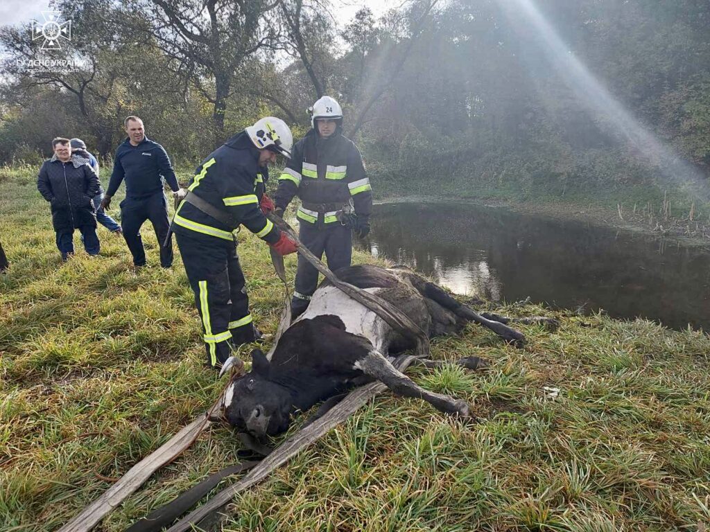 “Операція вдалася завдяки спільним зусиллям рятувальників та селян! Аби витягнути худобу, фахівці ДСНС обв’язали її задню частину мотузками і пожежним рукавом, інші кінці яких прив’язали до пожежного автомобіля. Місцеві жителі ж тягнули корову мотузками, прив’язаними за роги. Після вдалої операції врятована прилягла на травку відпочити, але не надовго”, – йдеться у повідомленні.
