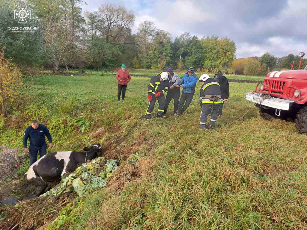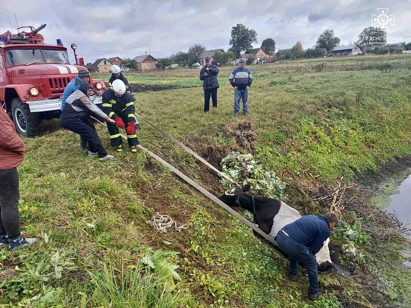 16 жовтня до ДСНС надійшов незвичайний виклик. У с. Старий Любар корова застрягла задніми ногами в багнюці. Фахівці рятувальної служби здійснили успішну операцію з порятнку тварини.