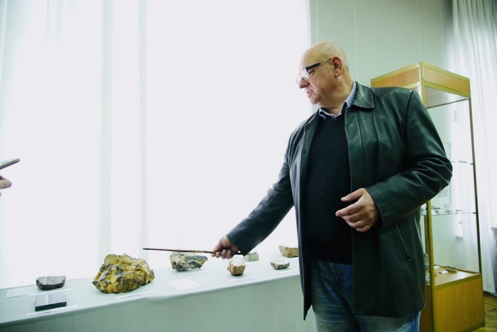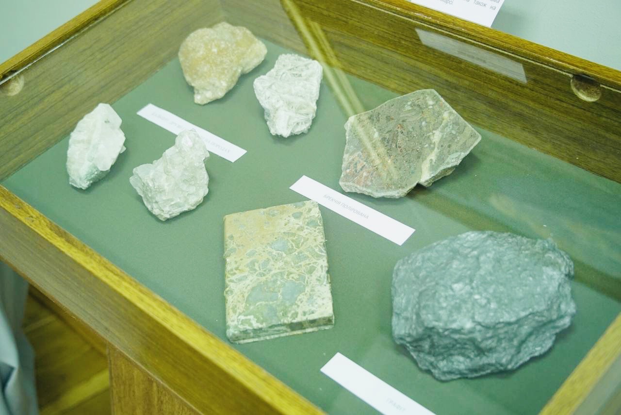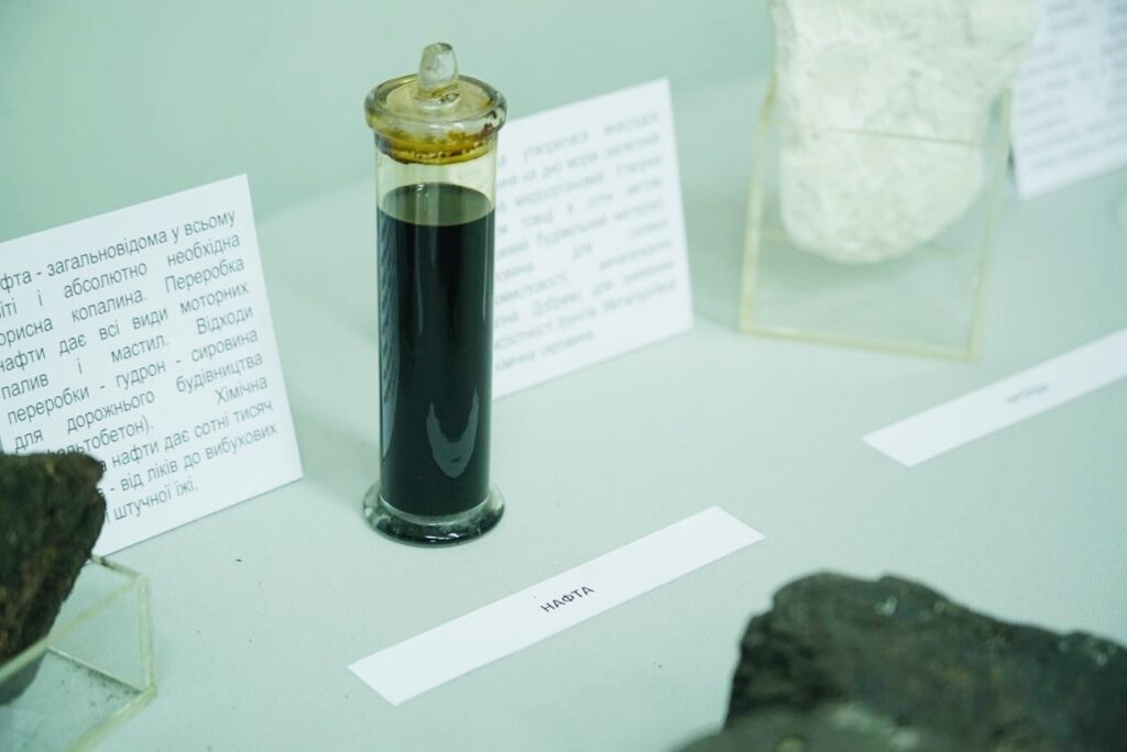 “У нас є зразок нафти, нумуліти, белемніти, також є декоративне каміння, самоцвіти“.