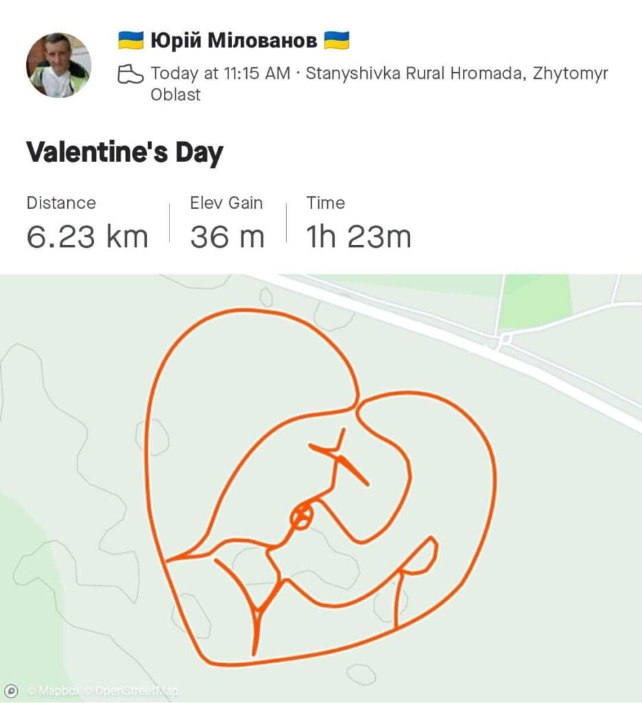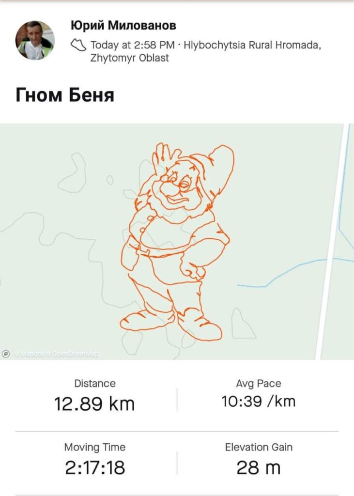 Юрій Мілованов – бігун-аматор із 7-річним досвідом. Разом з друзями він долає різні дистанції, бере участь в спортивних заходах, а ще має оригінальне захоплення – створює GPS-малюнки, детальніше з якими можна ознайомитися в спільноті “Бігопис” у соцмережі. Її запустив у листопаді 2020-го і відтоді ділиться з користувачами своїми результатами.