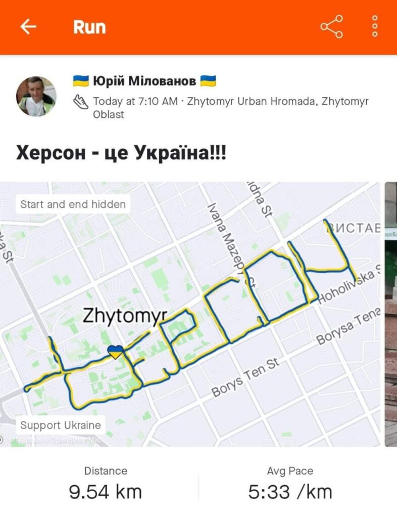 Бігун розповідає, що ще до початку повномасштабного вторгнення росії, задумав створення великого малюнка – загальний маршрут близько 50 км. Ідею вже почав потрохи втілювати, але остаточно має намір завершити і пробігти після остаточної перемоги України. Власне, це й стане його присвятою такій історичній та довгоочікуваний події.