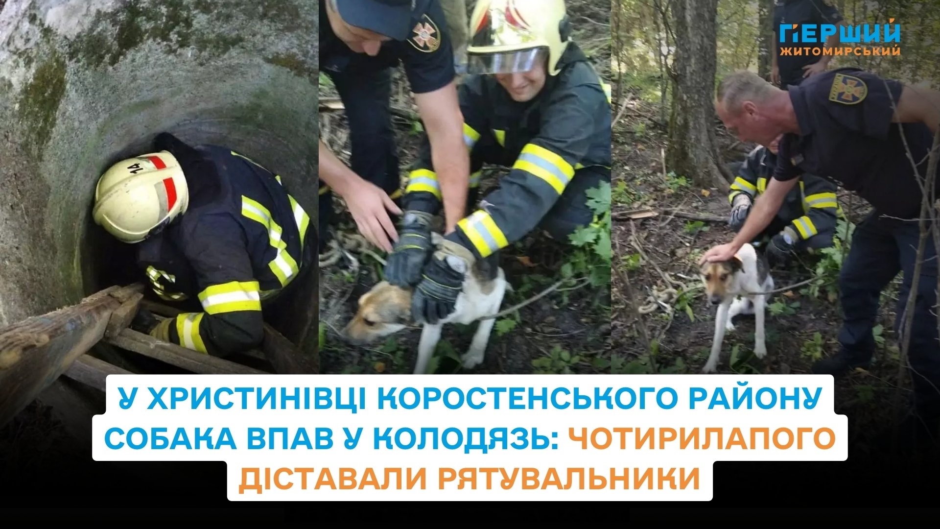 У селі Христинівка Коростенського району рятувальники допомогли собаці, який випадково впав у чотириметровий колодязь. Інцидент стався вранці 2 вересня, повідомили у Головному управлінні ДСНС у Житомирській області.