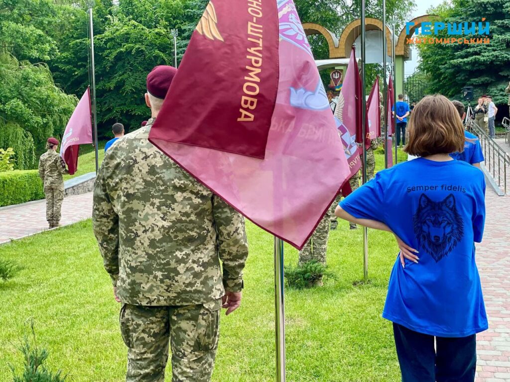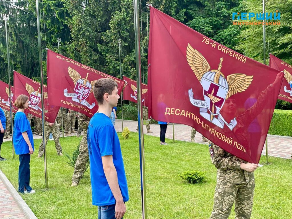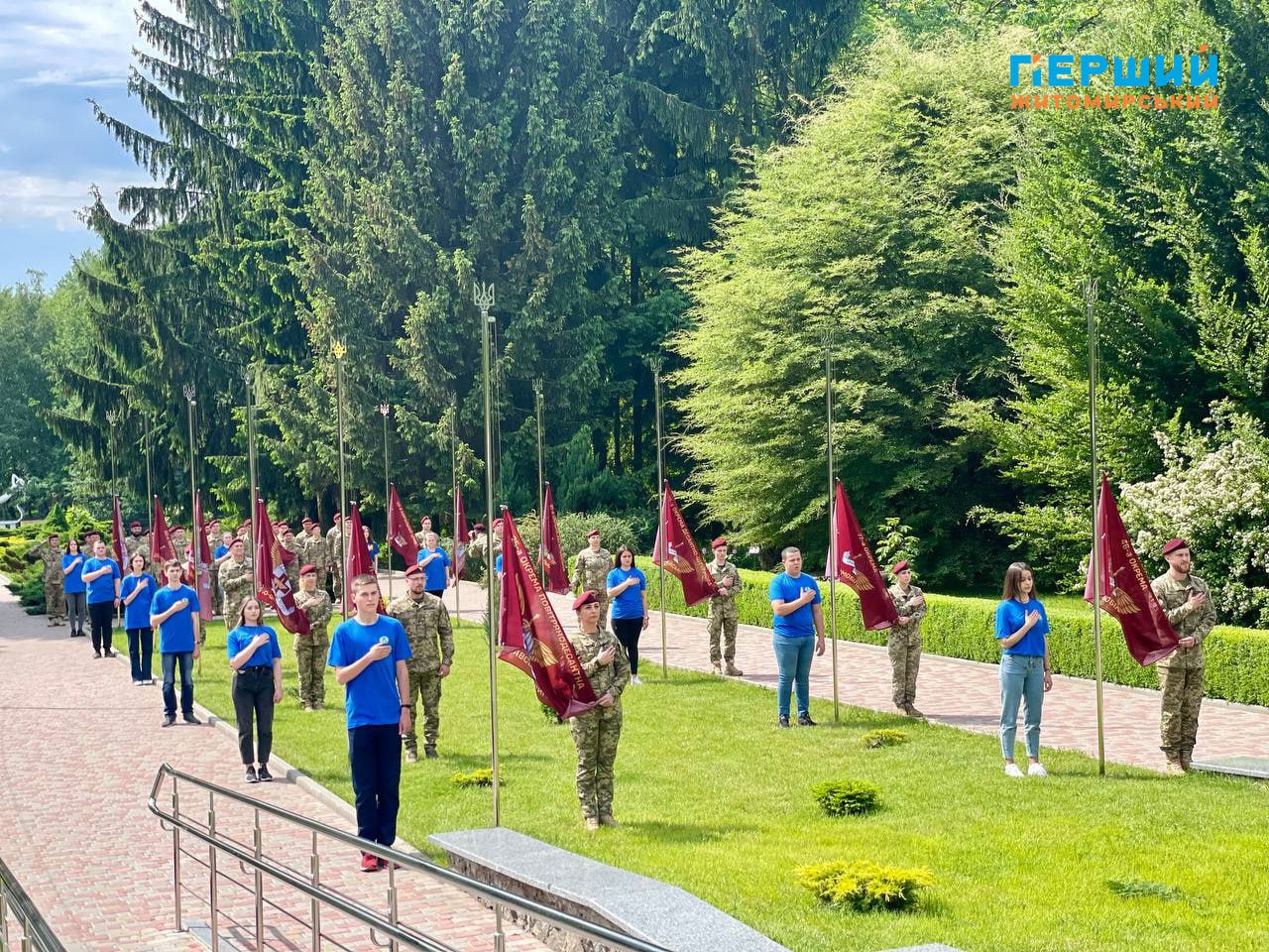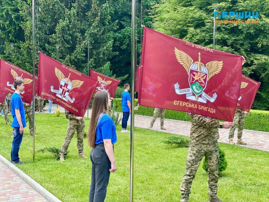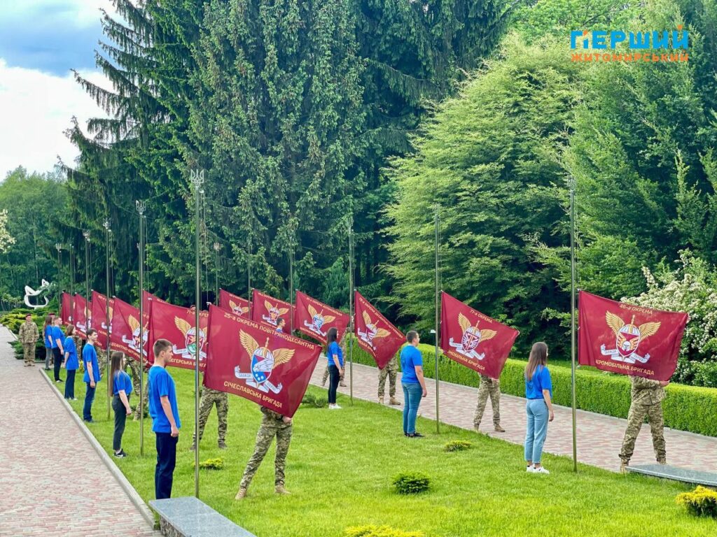 Зокрема, на території Ботсаду протягом останнього часу було облаштовано окрему експозицію, де на флагштоках розвіваються прапори усіх бригад ДШВ. Їх військовослужбовці-десантники разом з студентами підняли 23 травня.