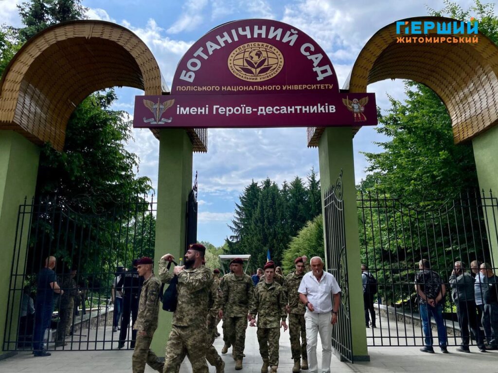 «Наші воїни продовжують протистояти ворогу. І в когорті цих захисників особливе місце займають десантно-штурмові війська ЗСУ. Сьогодні ми офіційно представляємо нову назву Ботанічного саду Поліського національного університету зі зміною вивіски – «Ботанічний сад Поліського національного університету імені Героїв-десантників», а також відкриваємо «Алею слави ДШВ», – оголосив ректор університету Олег Скидан під час урочистого заходу 23 травня в рамках відзначення Дня Героїв.