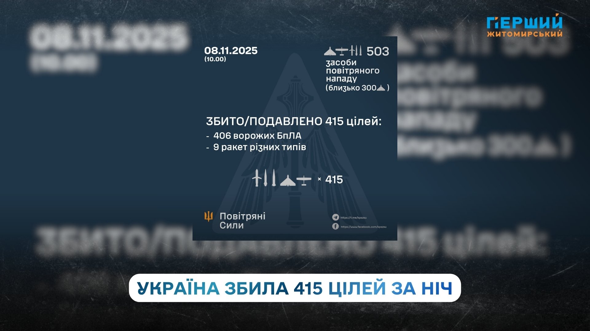З 18:30 7 листопада радіотехнічні війська Повітряних Сил відстежили 503 засоби повітряного нападу: